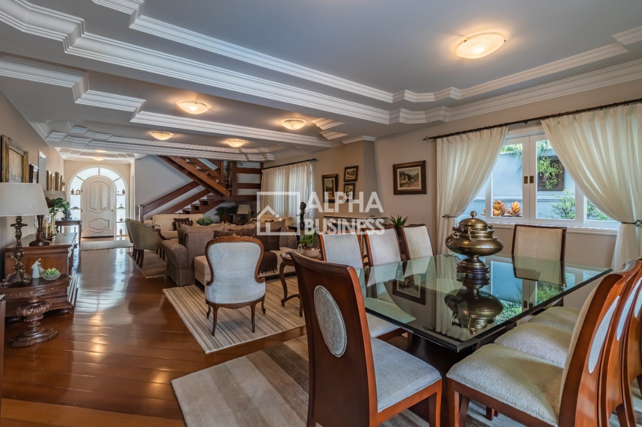 Ao entrar na residência, você é recebido por uma elegante sala de jantar, perfeita para receber familiares e amigos em ocasiões especiais. Há também espaçosas salas de estar, proporcionando um ambiente acolhedor e agradável para relaxar e socializar.