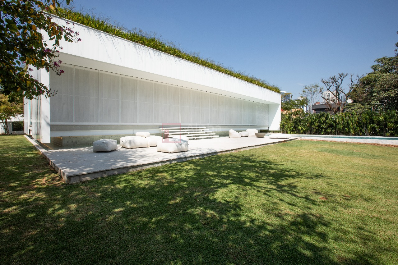 As fachadas frontal e posterior, com 20 metros de extensão, flertam com o solo sem tocá-lo.