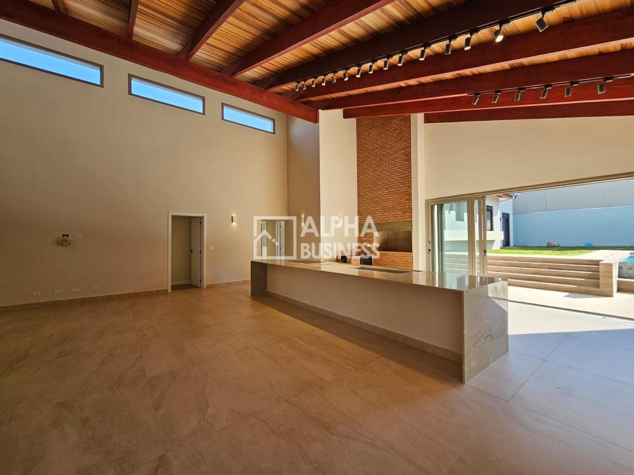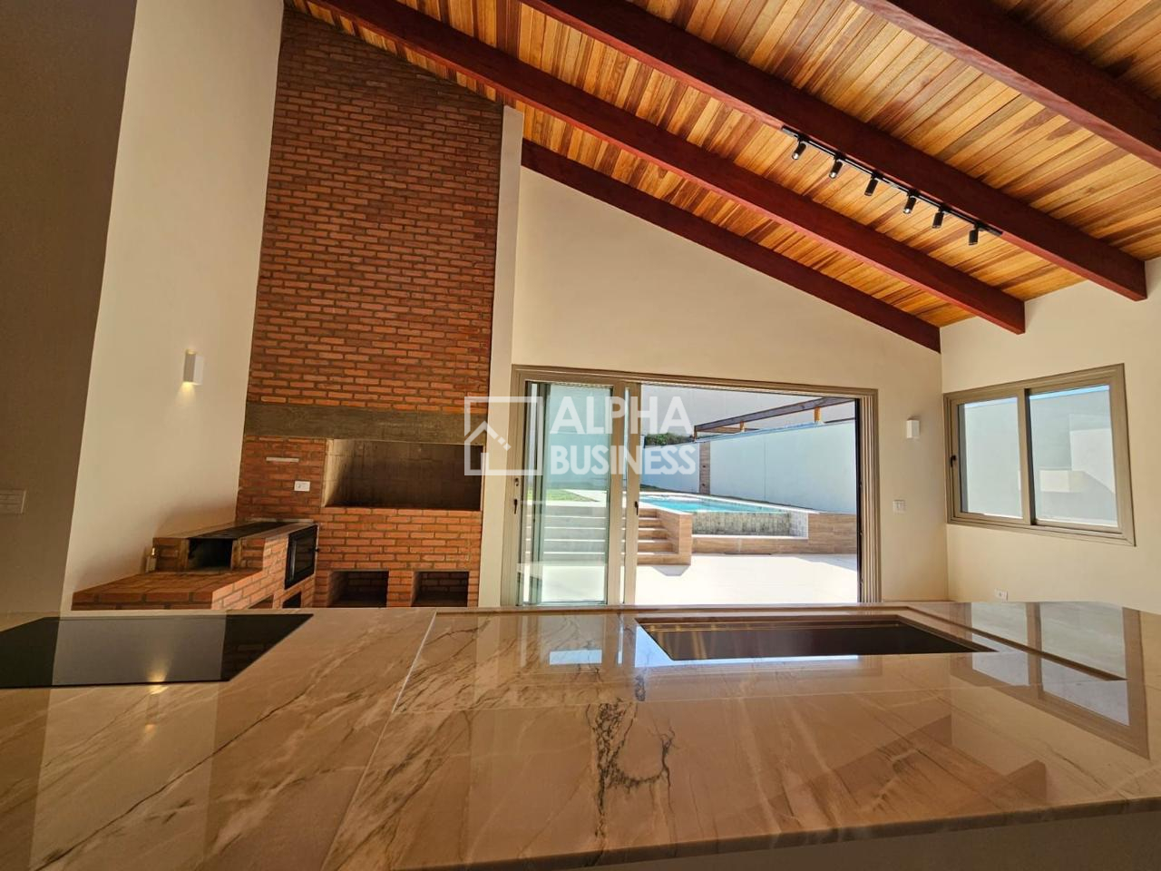 • Cozinha e sala integrada com pé direito de 7,5m e uma ilha de 5 metros (Cooktop Gorenje e cuba DeBacco);