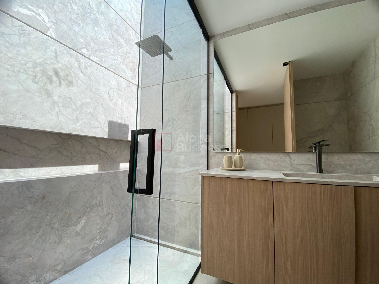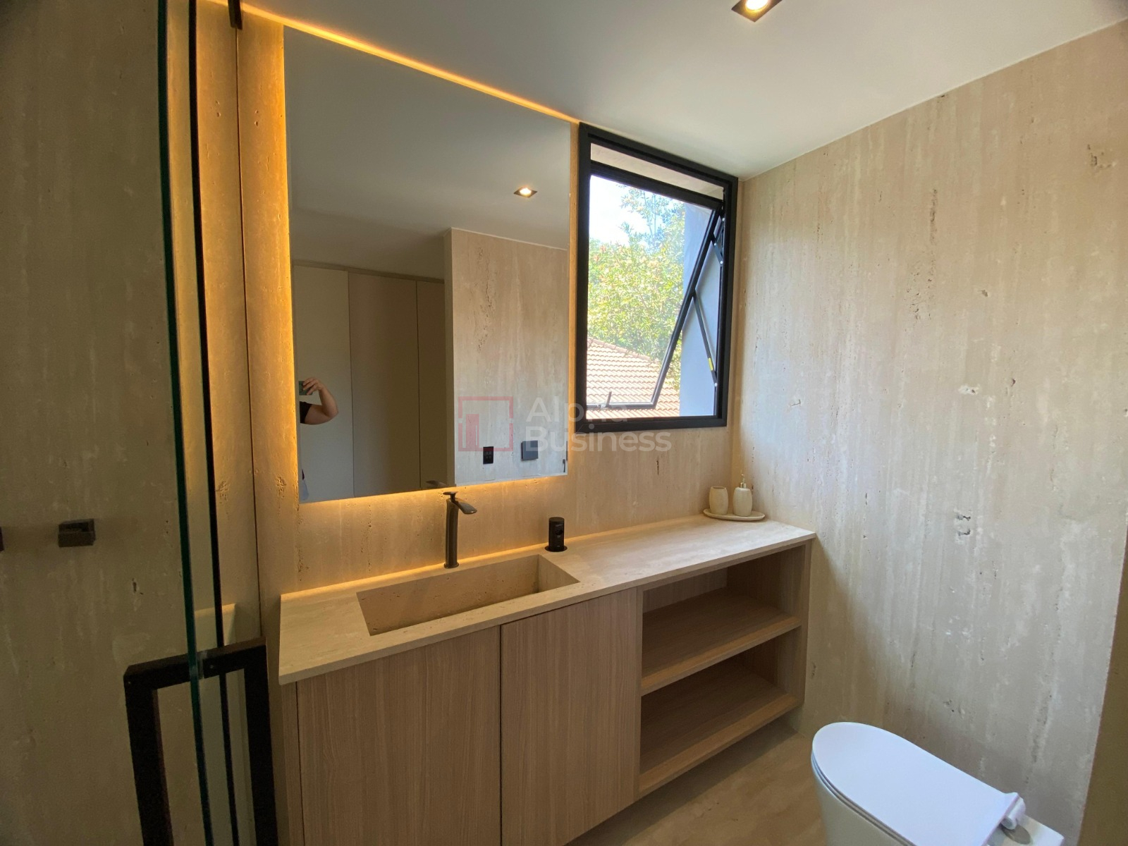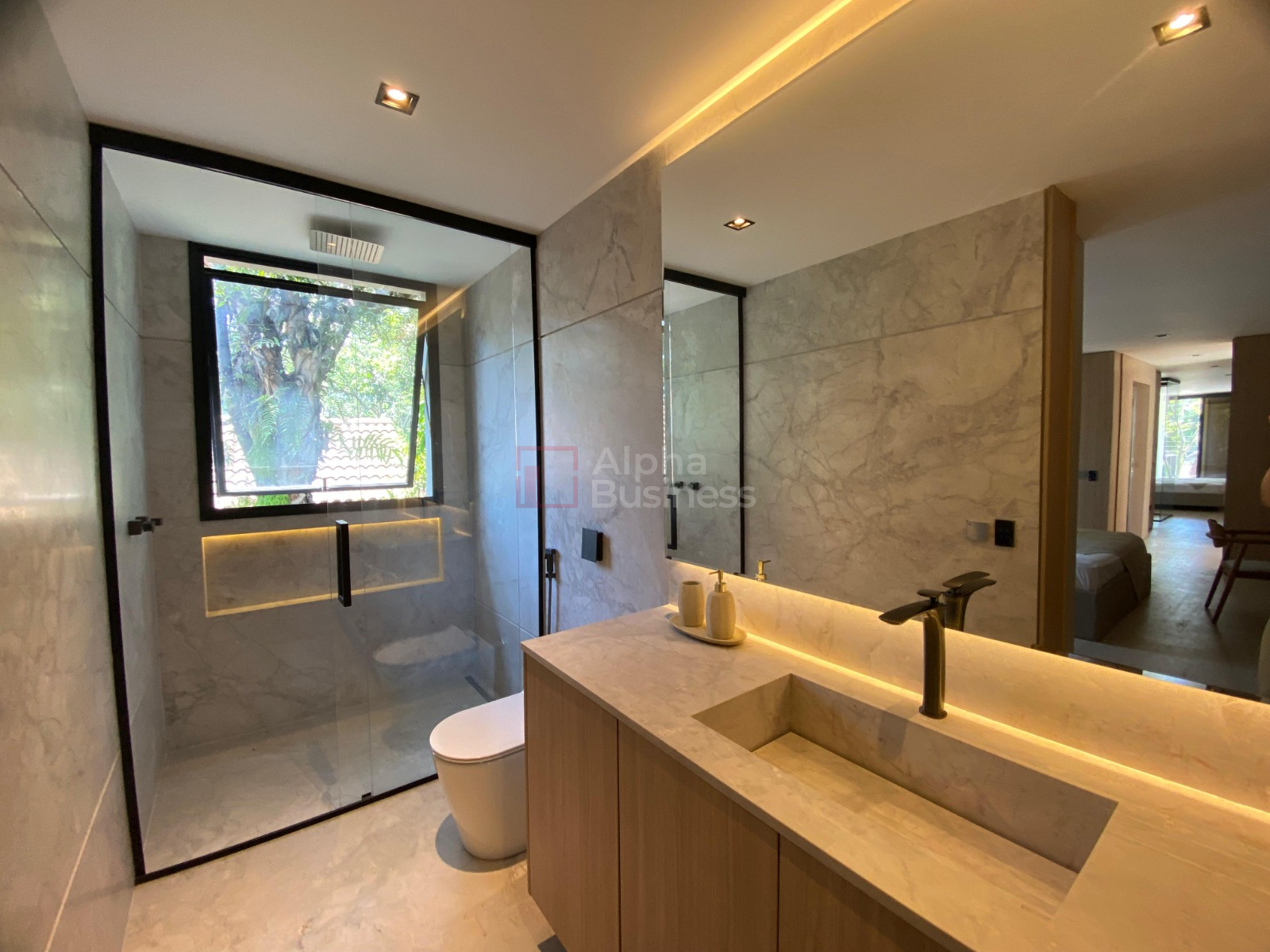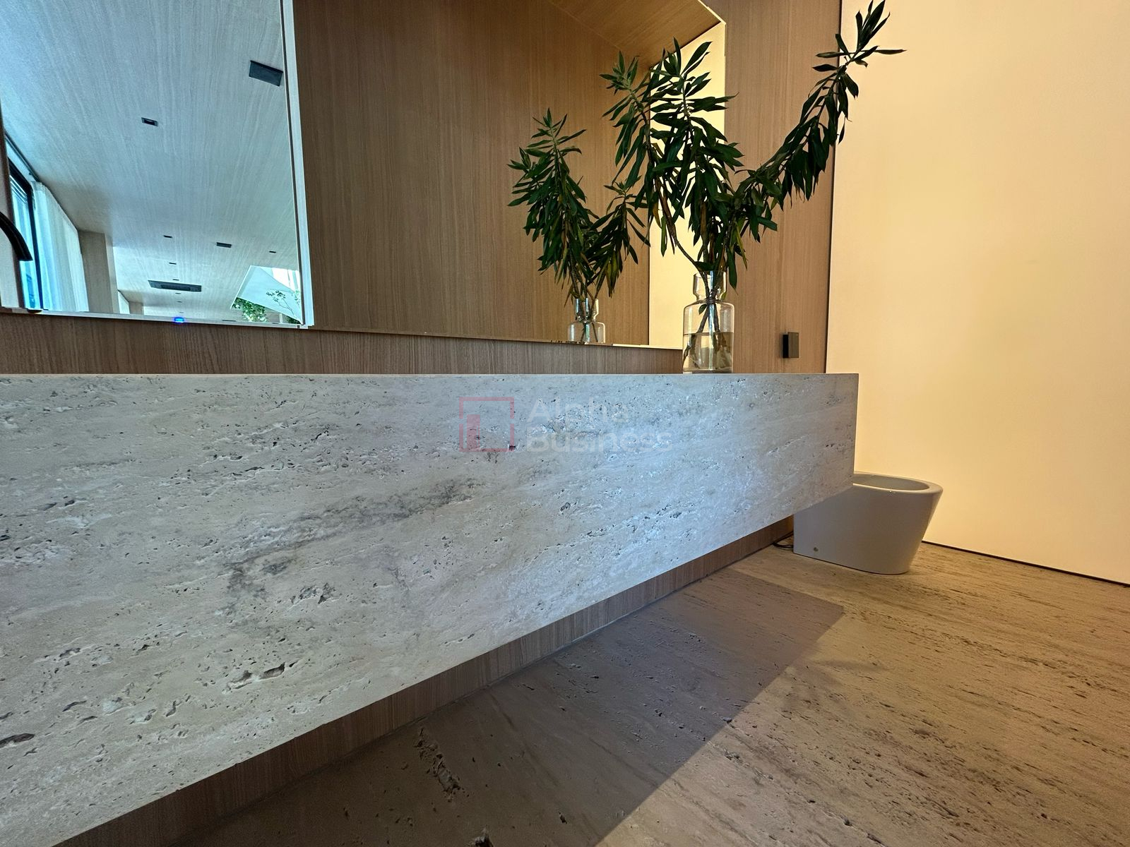 O luxo e o conforto se estendem a cada detalhe da residência. Os ambientes são revestidos com mármore, proporcionando uma sensação de exaltação e requinte. No pavimento superior, o piso aquecido garante conforto térmico mesmo nos dias mais frios. Além disso, todo o imóvel conta com sistema de ar condicionado, aspiração central e elevador para quatro pessoas, proporcionando praticidade e comodidade em todos os níveis.