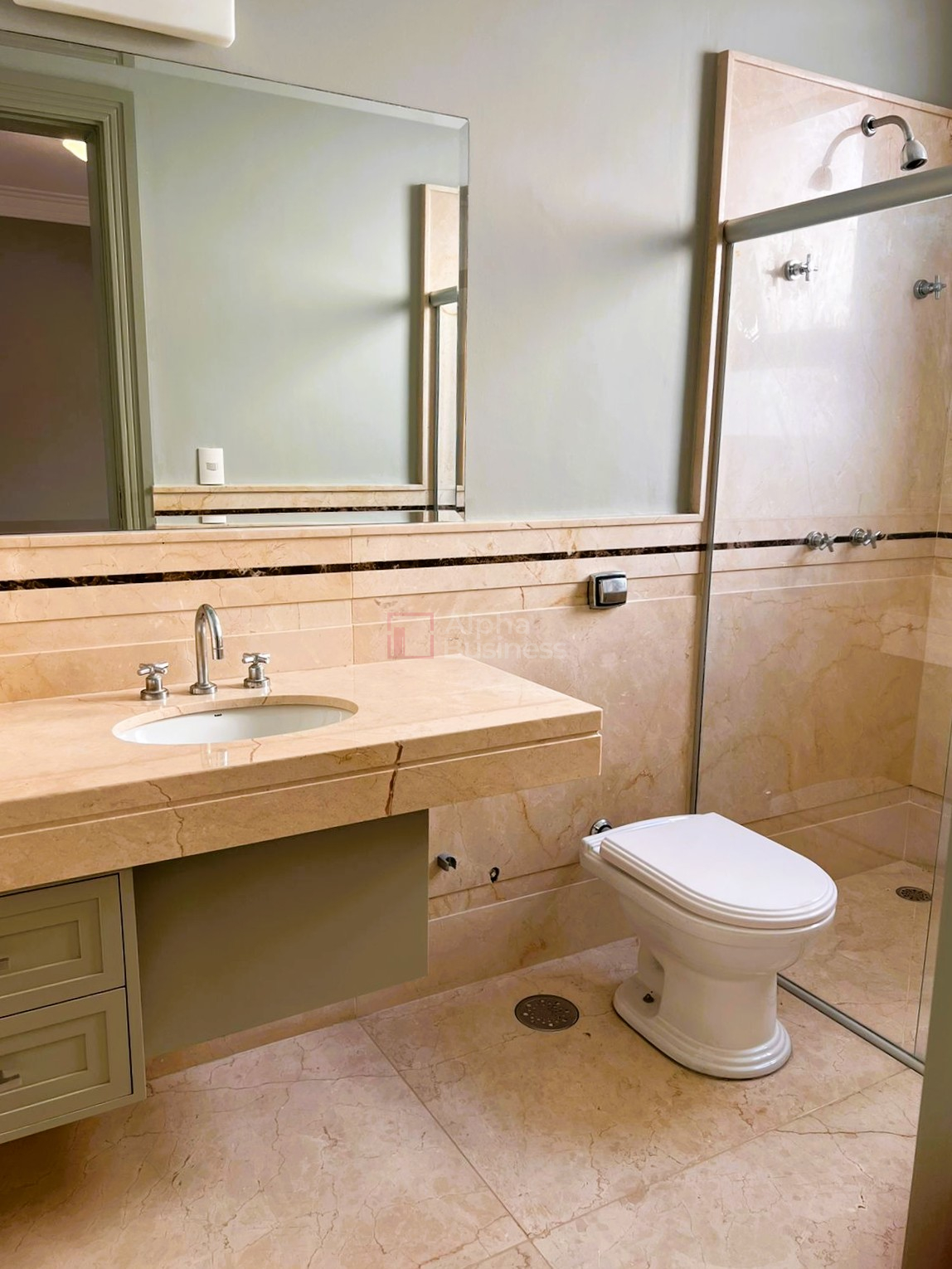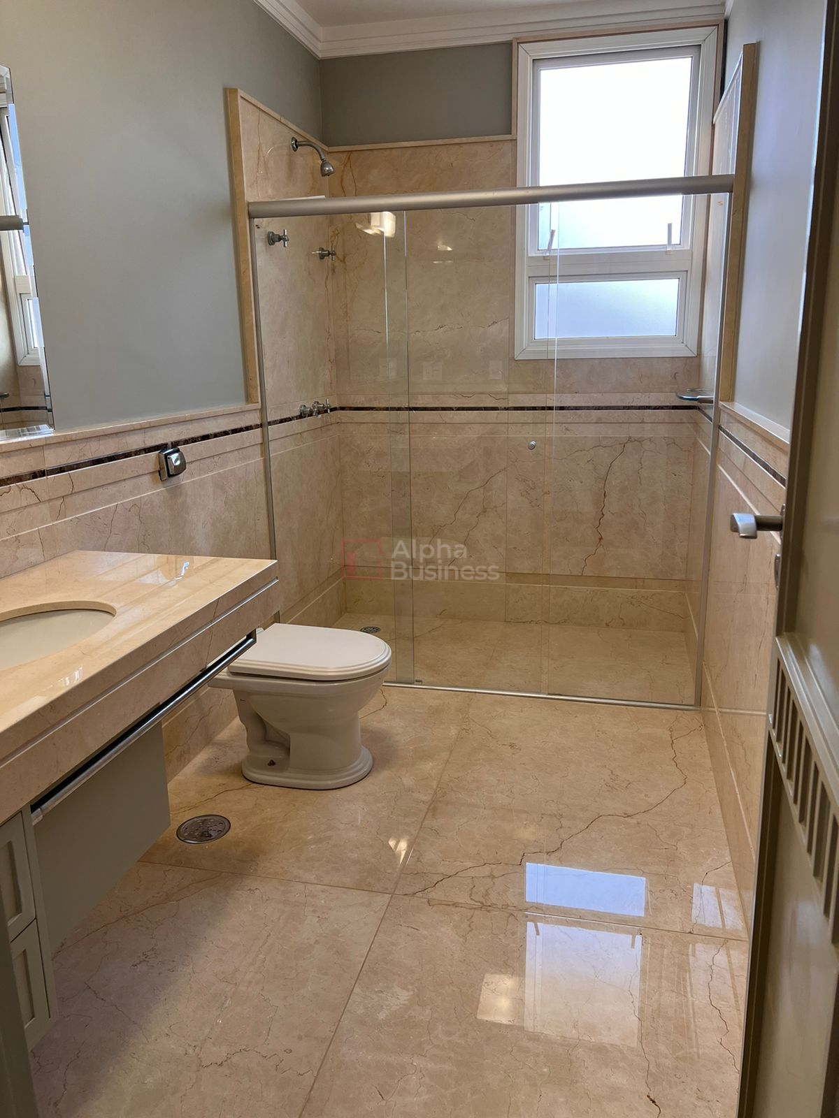 5 suítes, banheiros em mármore crema marfil