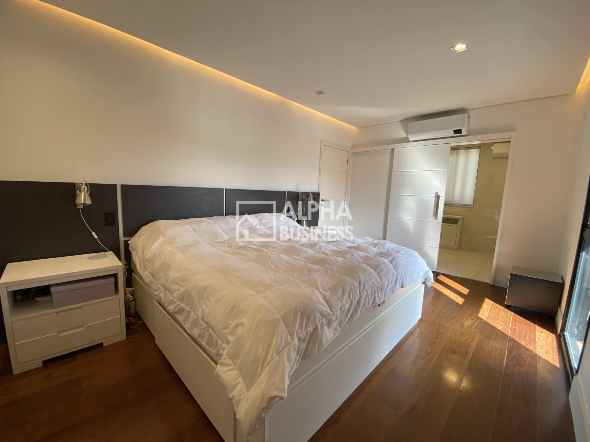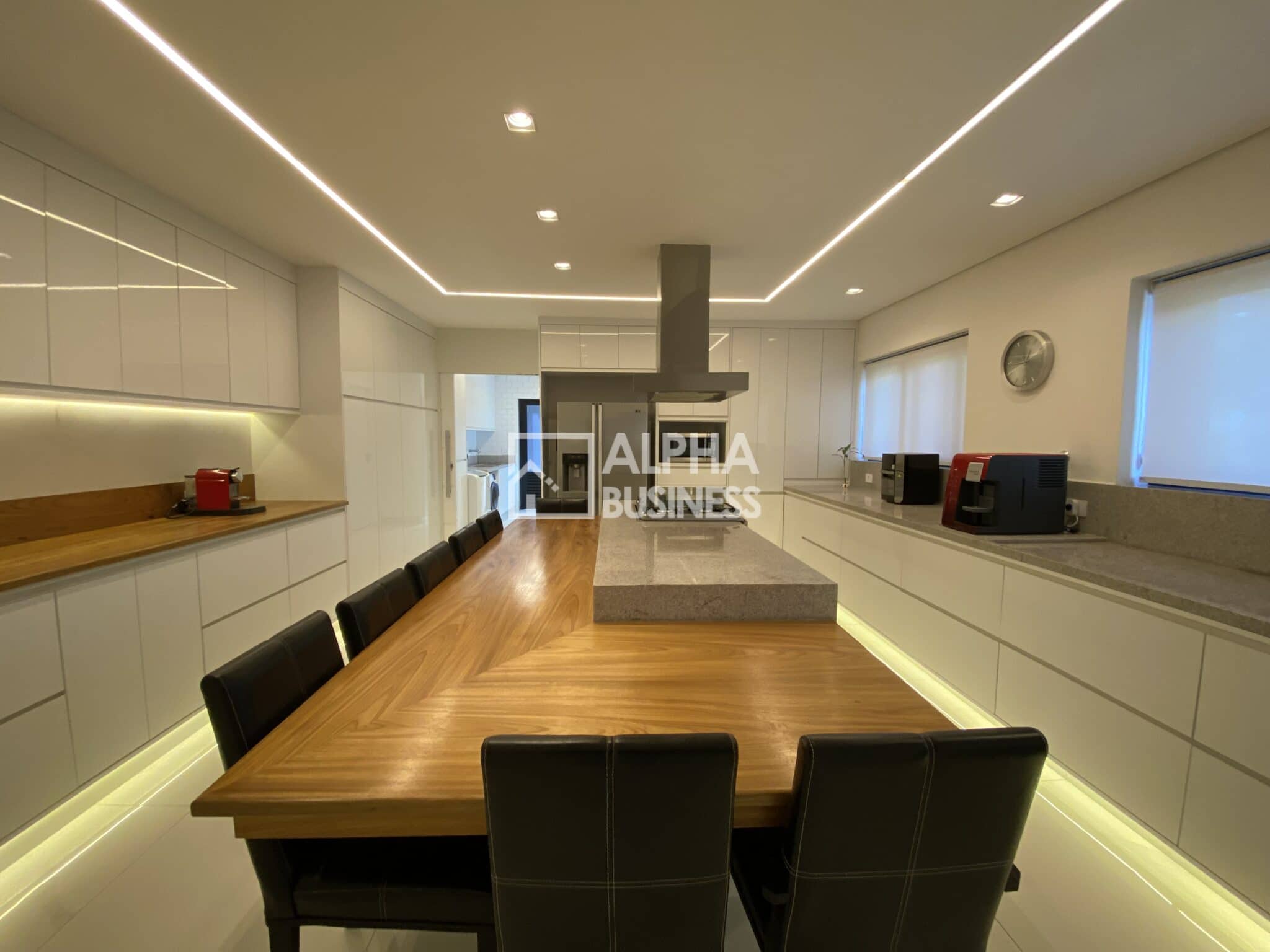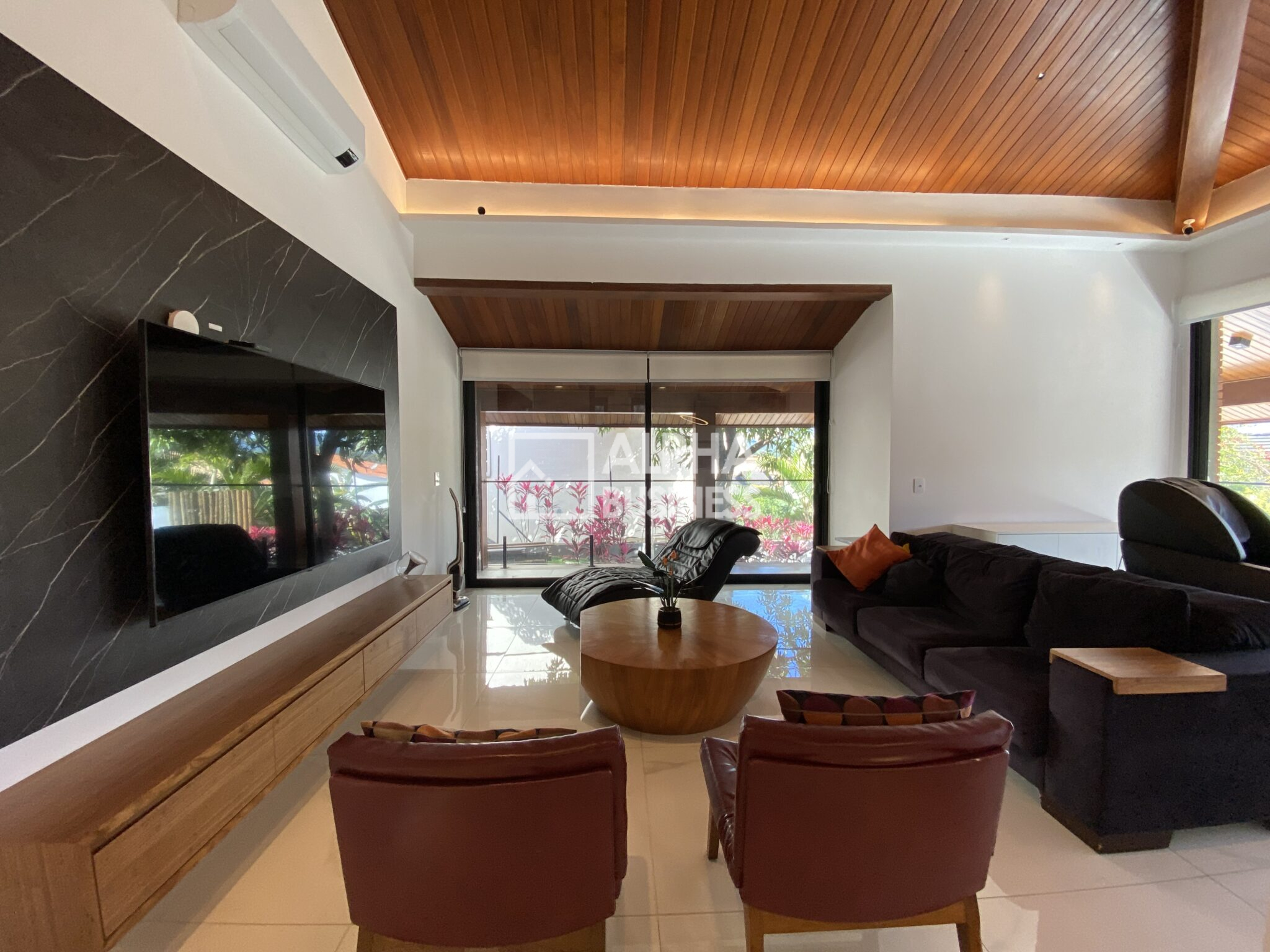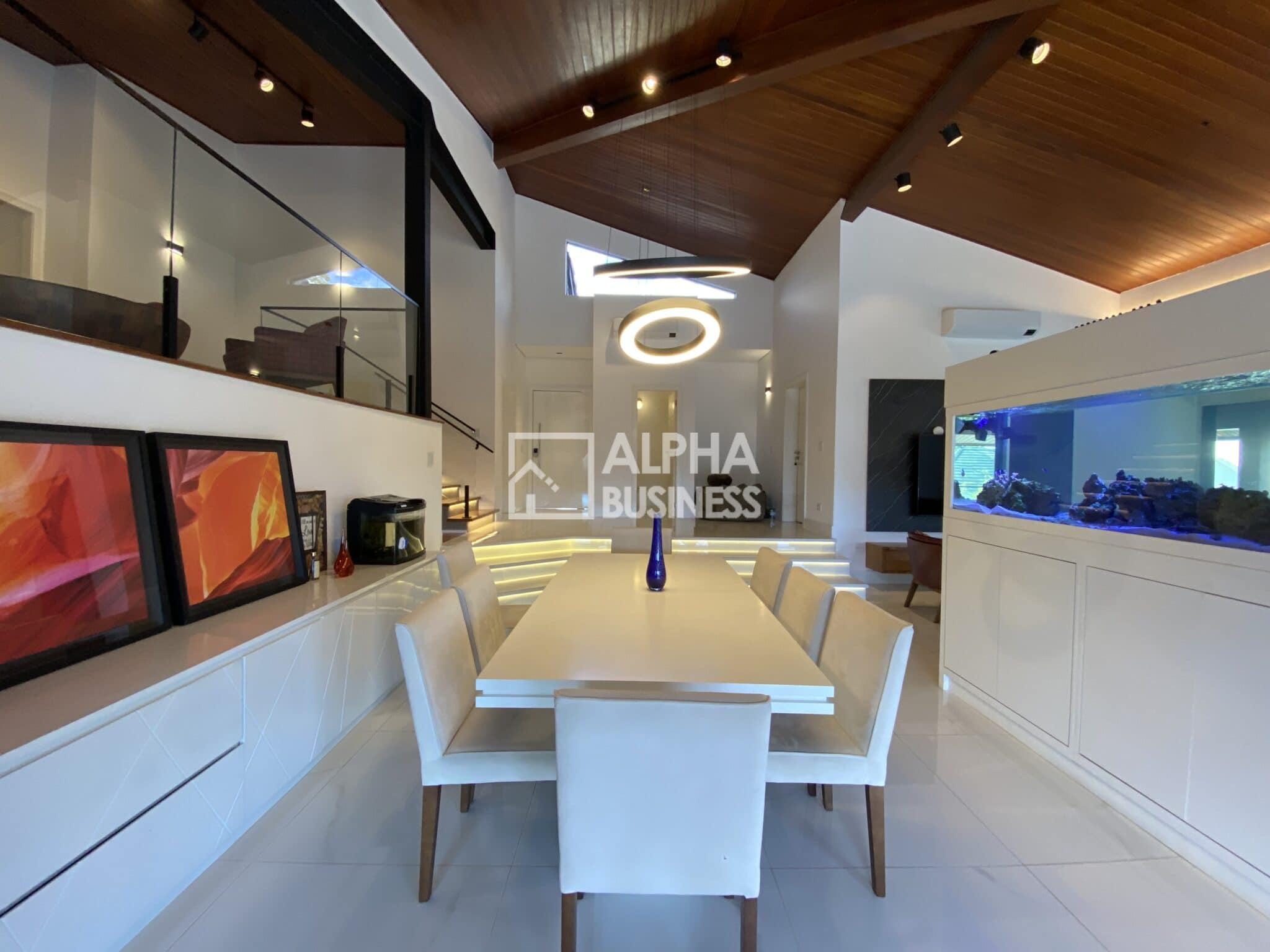 Residencial 6 em Alphaville. A casa foi construída em um terreno de 874m², próximo à portaria, e passou por uma reforma completa, incluindo a atualização dos sistemas elétricos, hidráulicos e instalação de energia fotovoltaica.