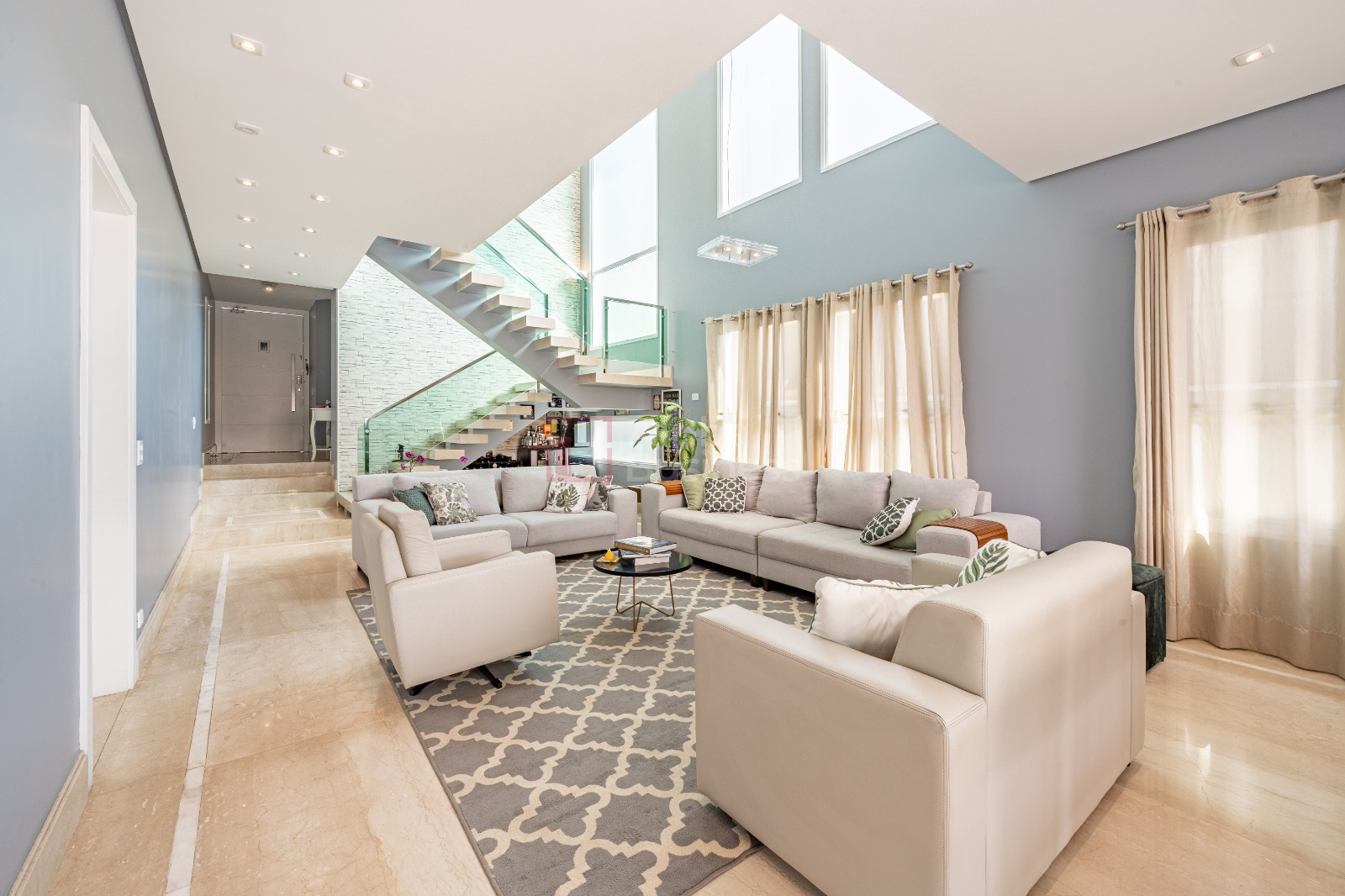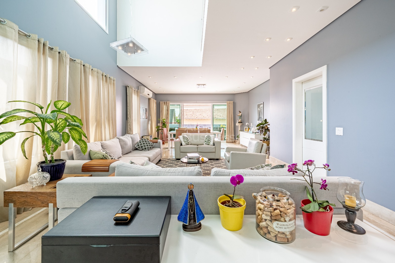 Living amplo e integrado, com pé-direito alto e perfeita iluminação natural, proporcionando uma sensação única de amplitude e sofisticação.