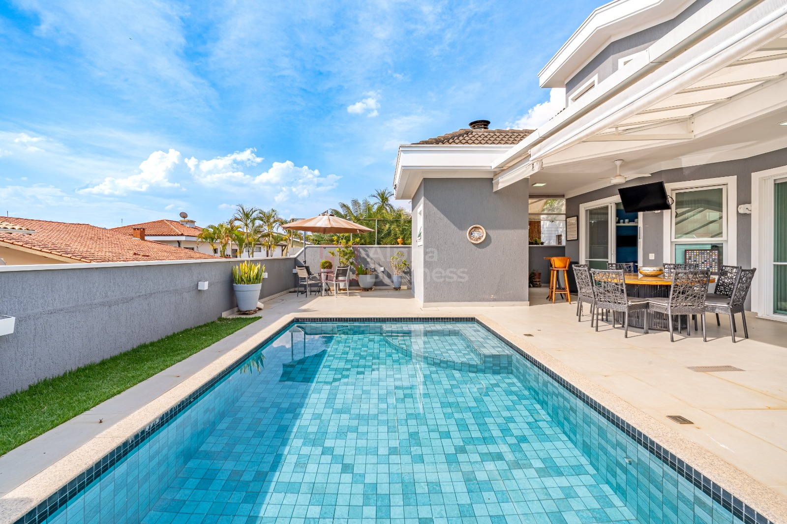 Área externa com espaço gourmet completo, ideal para momentos de lazer e convivência, e piscina aquecida, perfeita para todas as estações