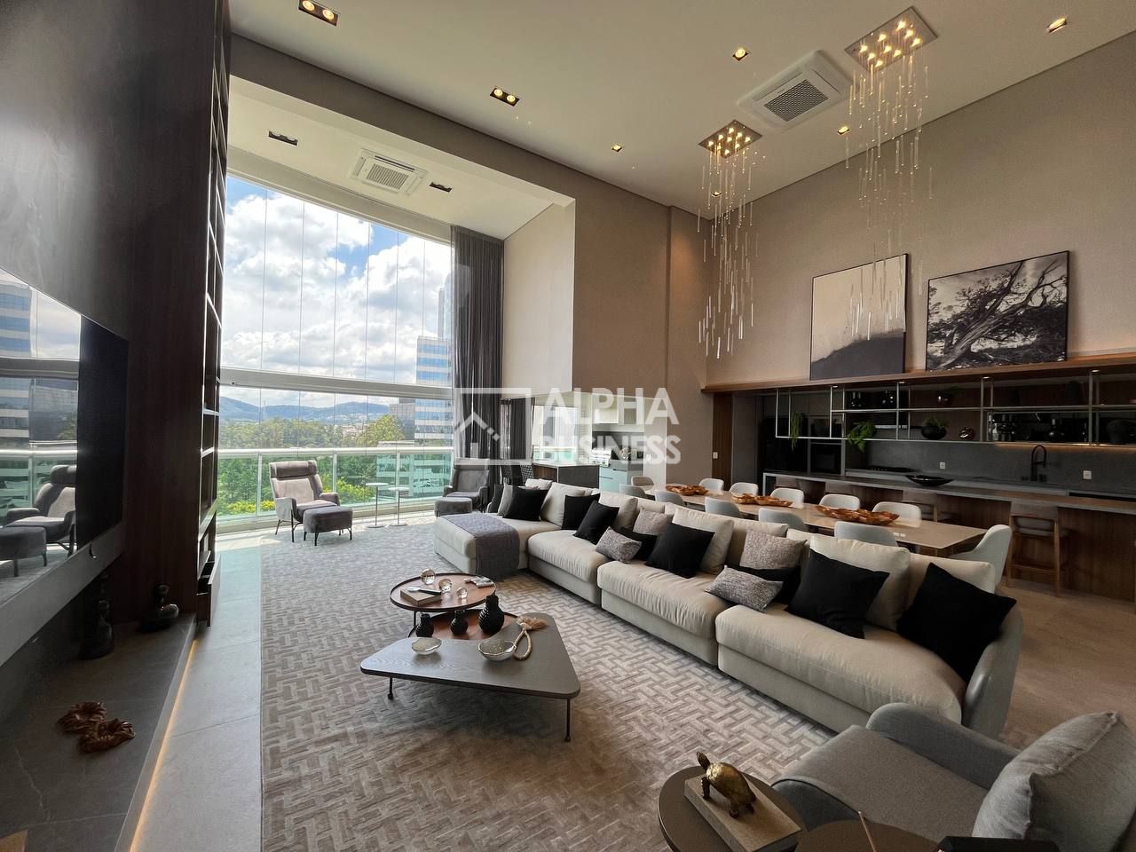 Ao entrar, você será recebido por uma sensação de grandeza, com um pé direito alto de 5.60 metros que confere uma atmosfera de elegância e sofisticação a cada canto. Este apartamento é verdadeiramente único, com acabamentos de alto padrão em todos os detalhes.