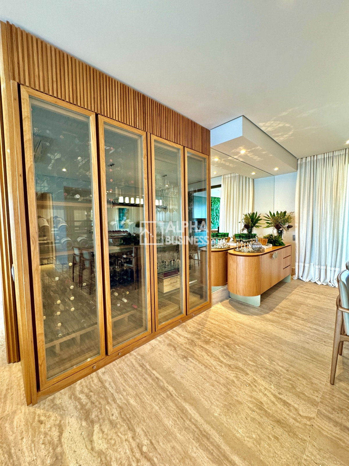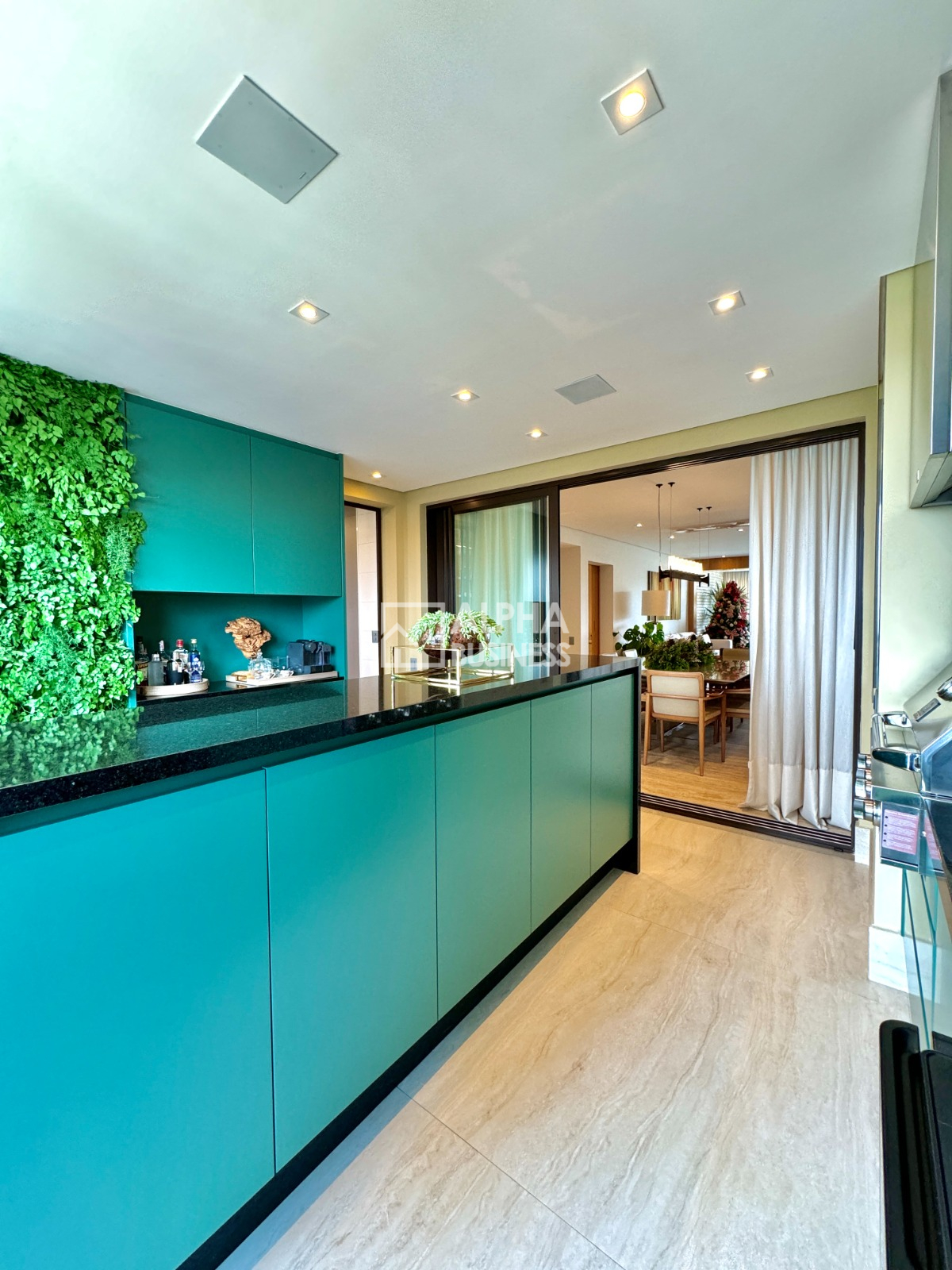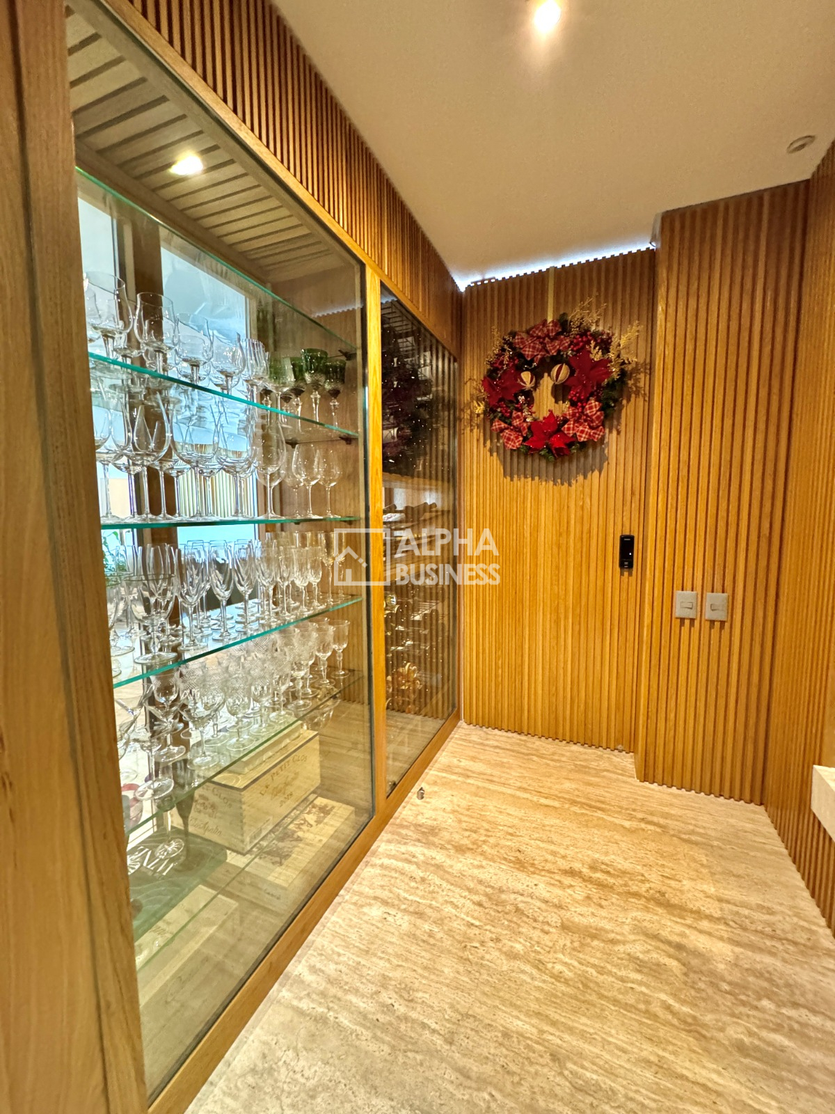 A cozinha é um verdadeiro convite à gastronomia, equipada com armários planejados que otimizam o espaço e facilitam o dia a dia. Para os amantes de vinho, a adega é um destaque especial, proporcionando o ambiente perfeito para armazenar e apreciar suas coleções. O espaço gourmet é ideal para receber amigos e familiares, oferecendo um ambiente acolhedor e sofisticado para jantares e celebrações.
