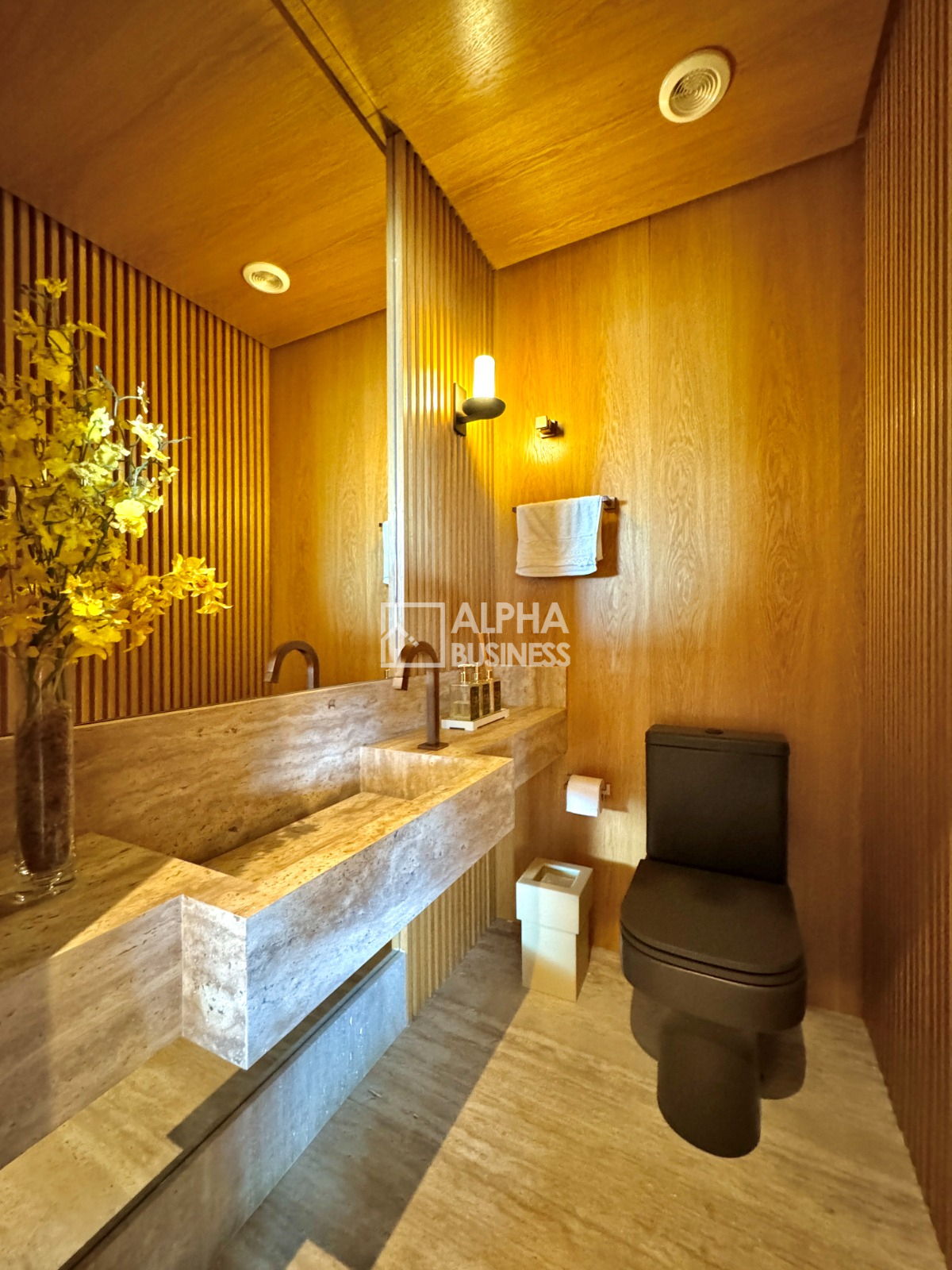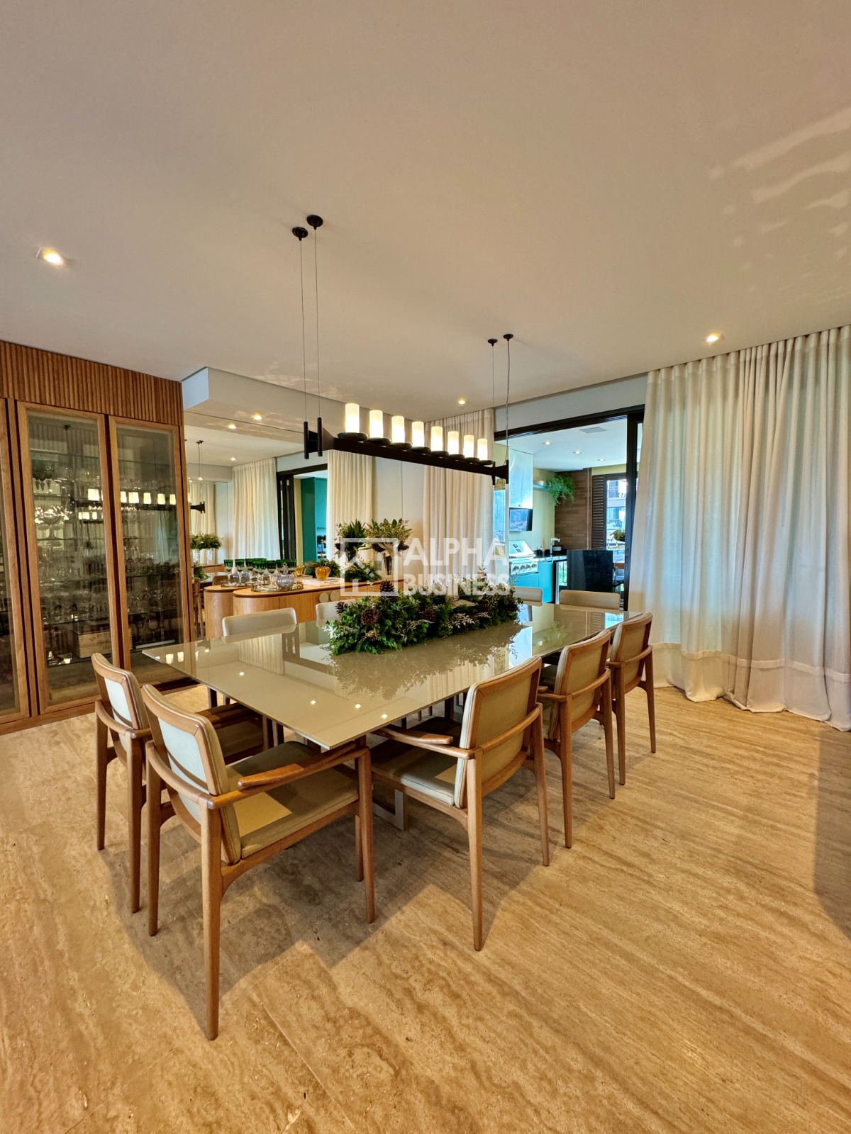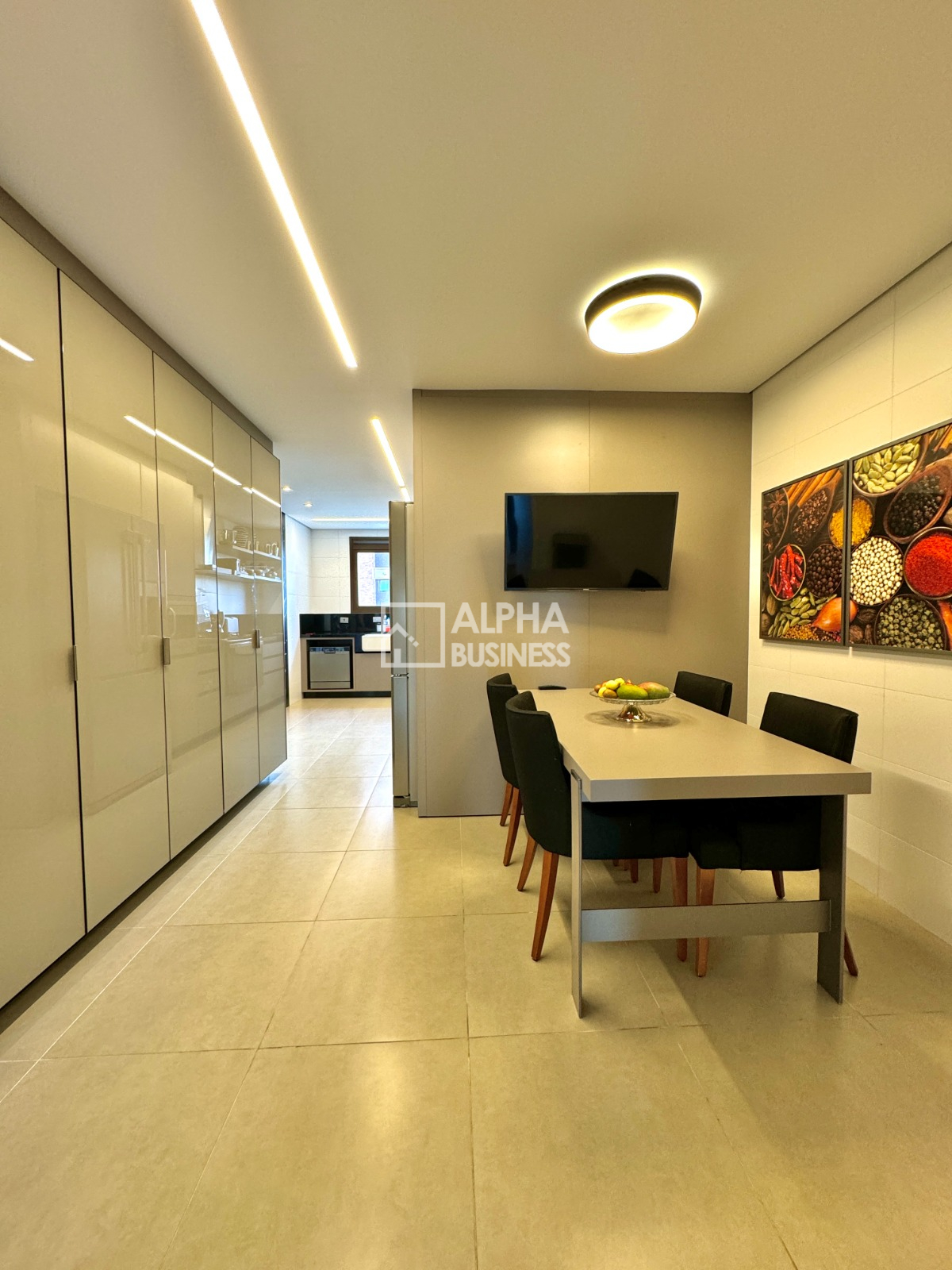 A cozinha é um verdadeiro convite à gastronomia, equipada com armários planejados que otimizam o espaço e facilitam o dia a dia. Para os amantes de vinho, a adega é um destaque especial, proporcionando o ambiente perfeito para armazenar e apreciar suas coleções. O espaço gourmet é ideal para receber amigos e familiares, oferecendo um ambiente acolhedor e sofisticado para jantares e celebrações.
