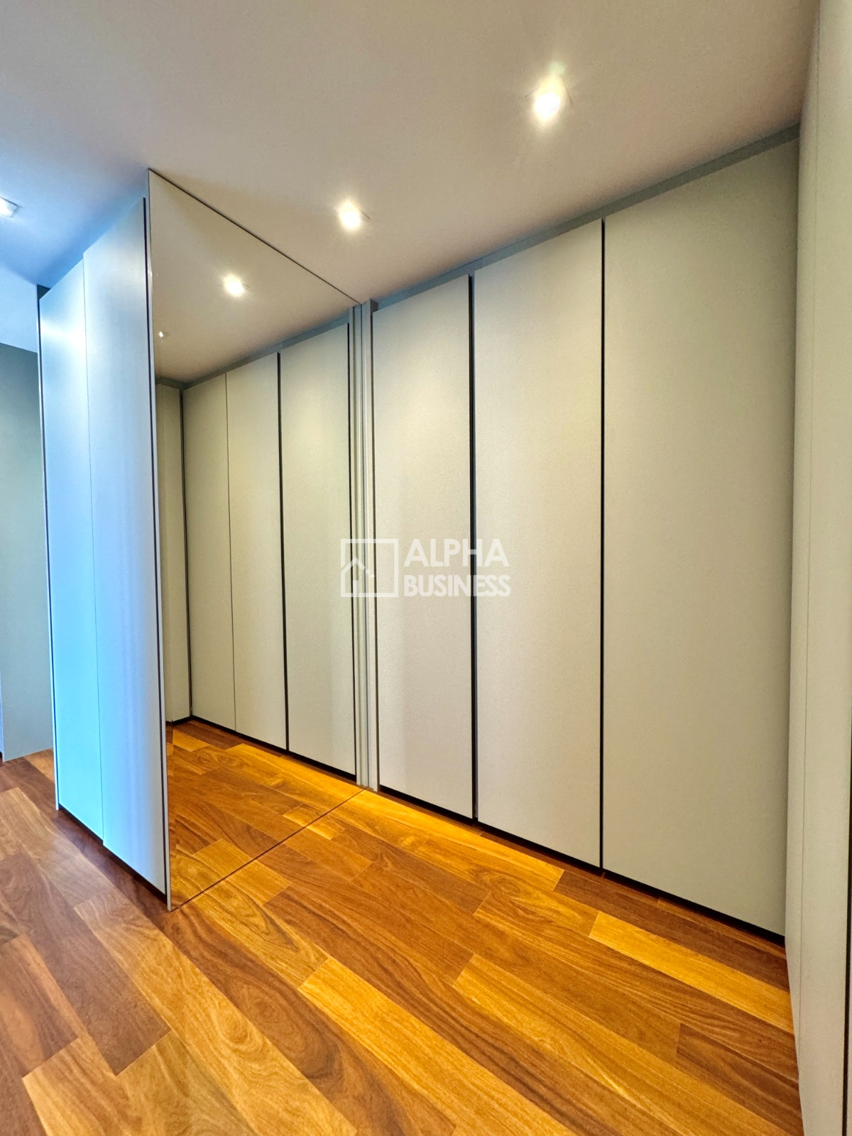 Com três suítes amplas e bem iluminadas, cada espaço foi cuidadosamente planejado para oferecer máximo conforto e privacidade. A área social do apartamento é um espetáculo à parte, com pisos em mármore Travertino que conferem uma sensação de elegância e grandiosidade. Já a área íntima conta com pisos em madeira Indusparquet, que trazem um toque de aconchego e requinte. Os móveis planejados, assinados pela prestigiada marca Ornare, são de primeiríssima linha, garantindo durabilidade e design sofisticado.