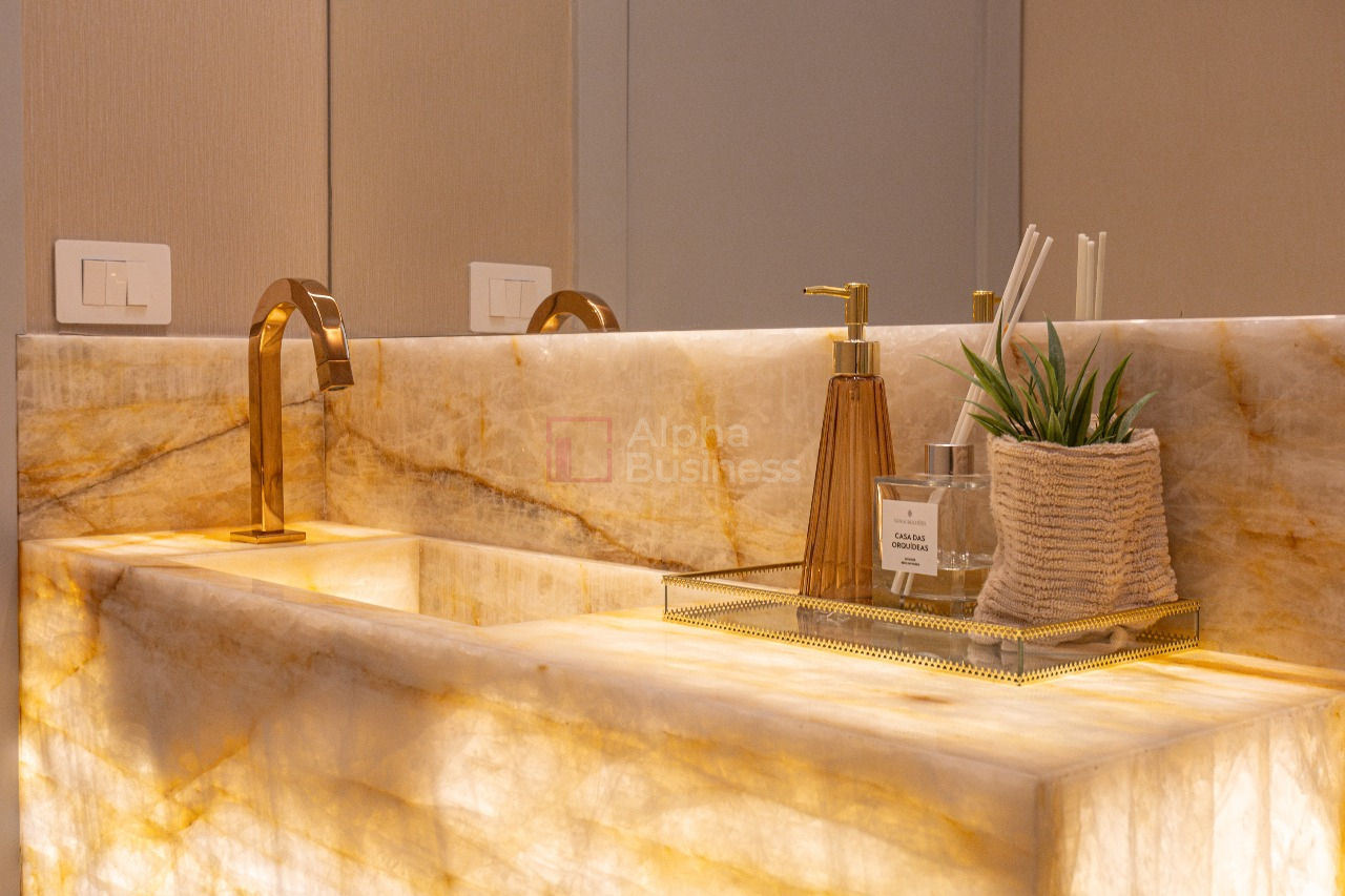 • Mármores nos tampos de banheiro e escada