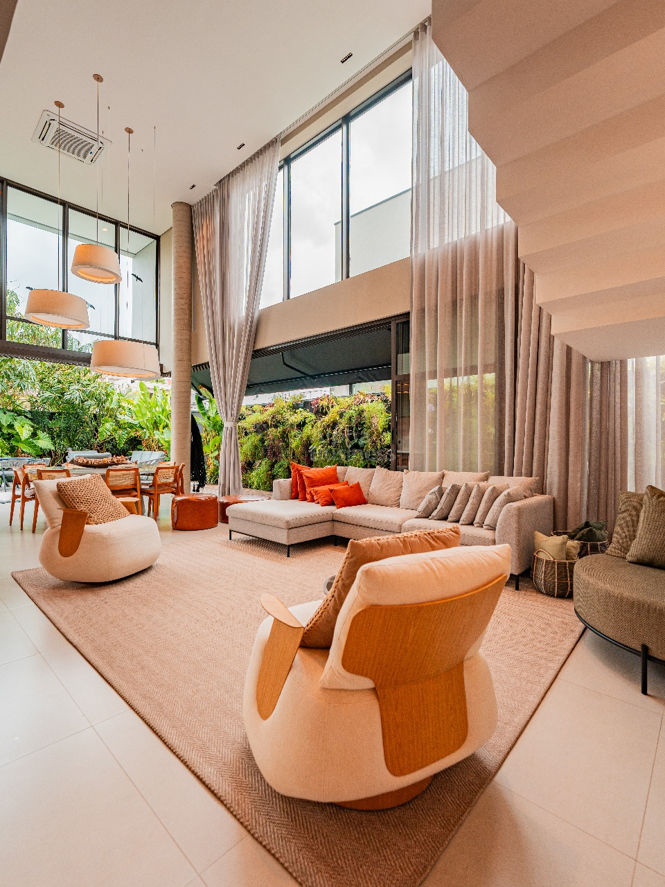 Living integrado com três ambientes com ar condicionado central