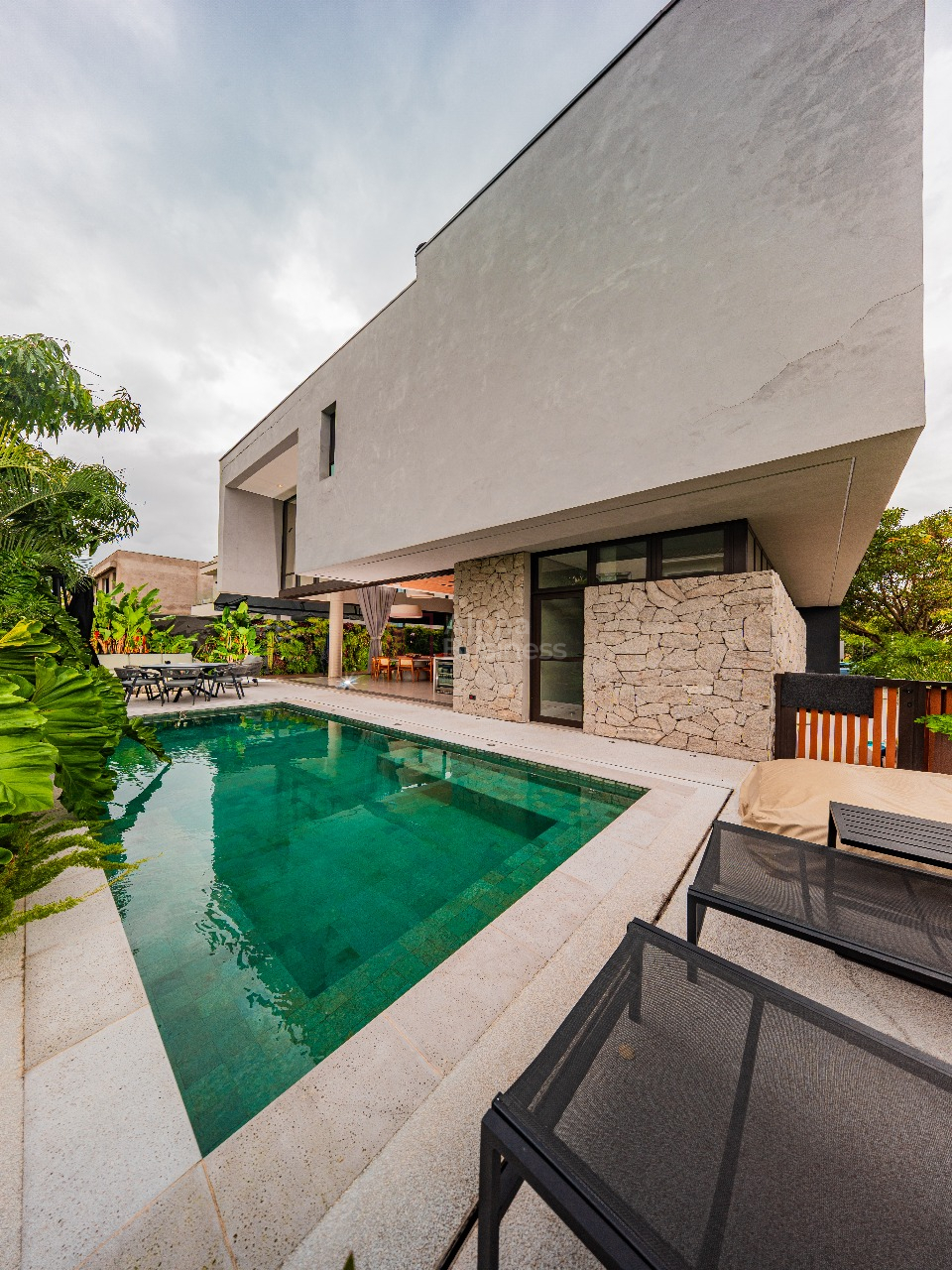 A casa é equipada com automação completa, permitindo o controle de iluminação, climatização e som ambiente em todas as áreas sociais, integrando tecnologia e praticidade ao seu cotidiano. Sua área externa é um verdadeiro refúgio, a piscina revestida em hijau se destaca em meio ao paisagismo exuberante, cuidadosamente desenhado para garantir paz, privacidade e conexão com a natureza. Um ambiente ideal para lazer e contemplação, onde cada detalhe foi pensado para transformar o seu dia a dia em momentos únicos