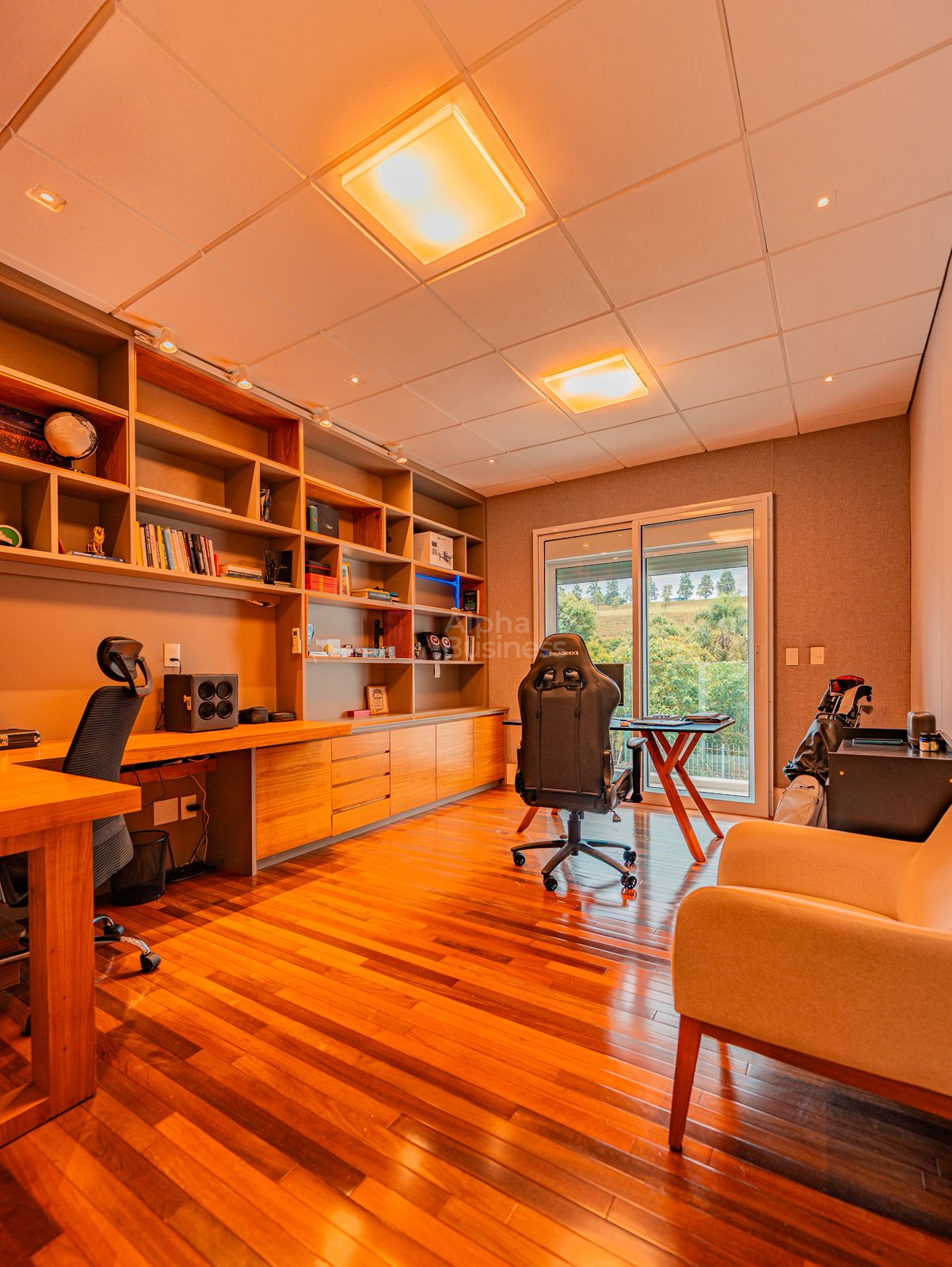 Ar condicionado em todos os ambientes, com vista para o verde. escritório, home theater.
