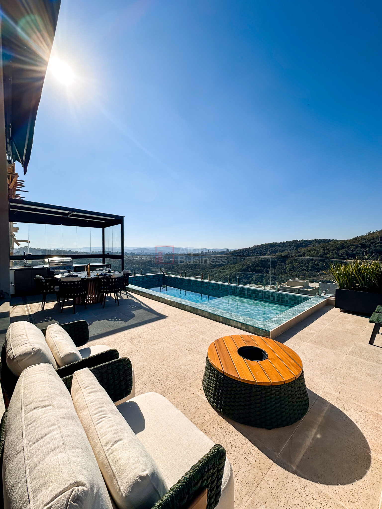Piscina e churrasqueira com vista preservada
