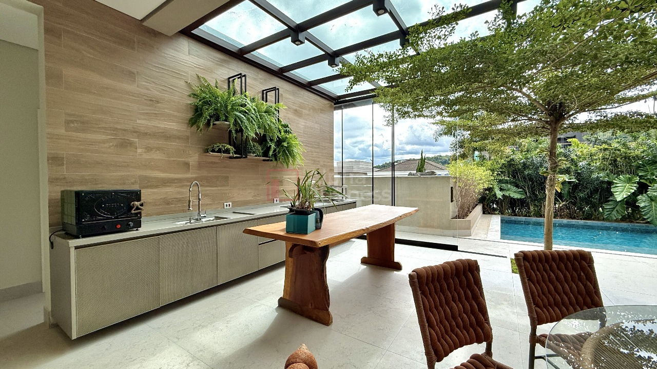 Com um design elegante e uma variedade de comodidades, como aquecimento solar, espaço gourmet com churrasqueira, lareira, piscina, sauna e solarium, esta casa é perfeita para quem busca um estilo de vida sofisticado e relaxante.