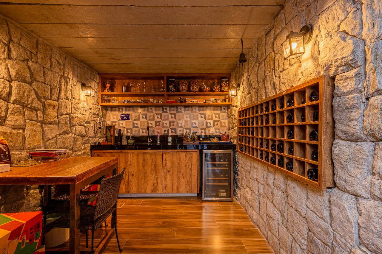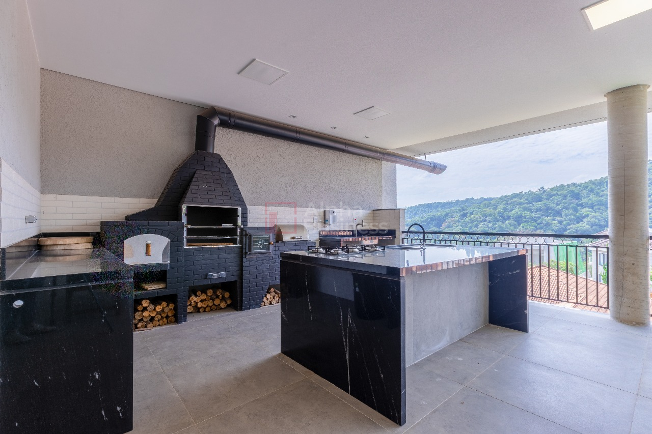 Salão de festas com churrasqueira, forno de pizza, forno de pão e ilha