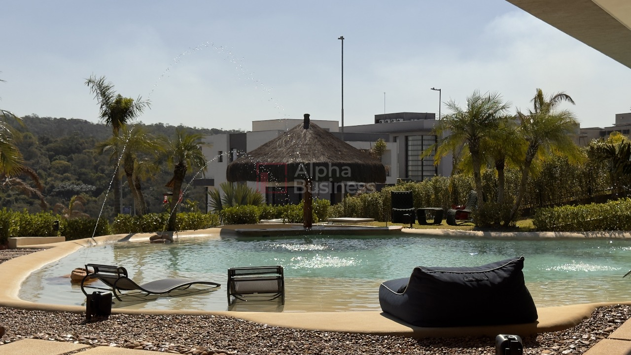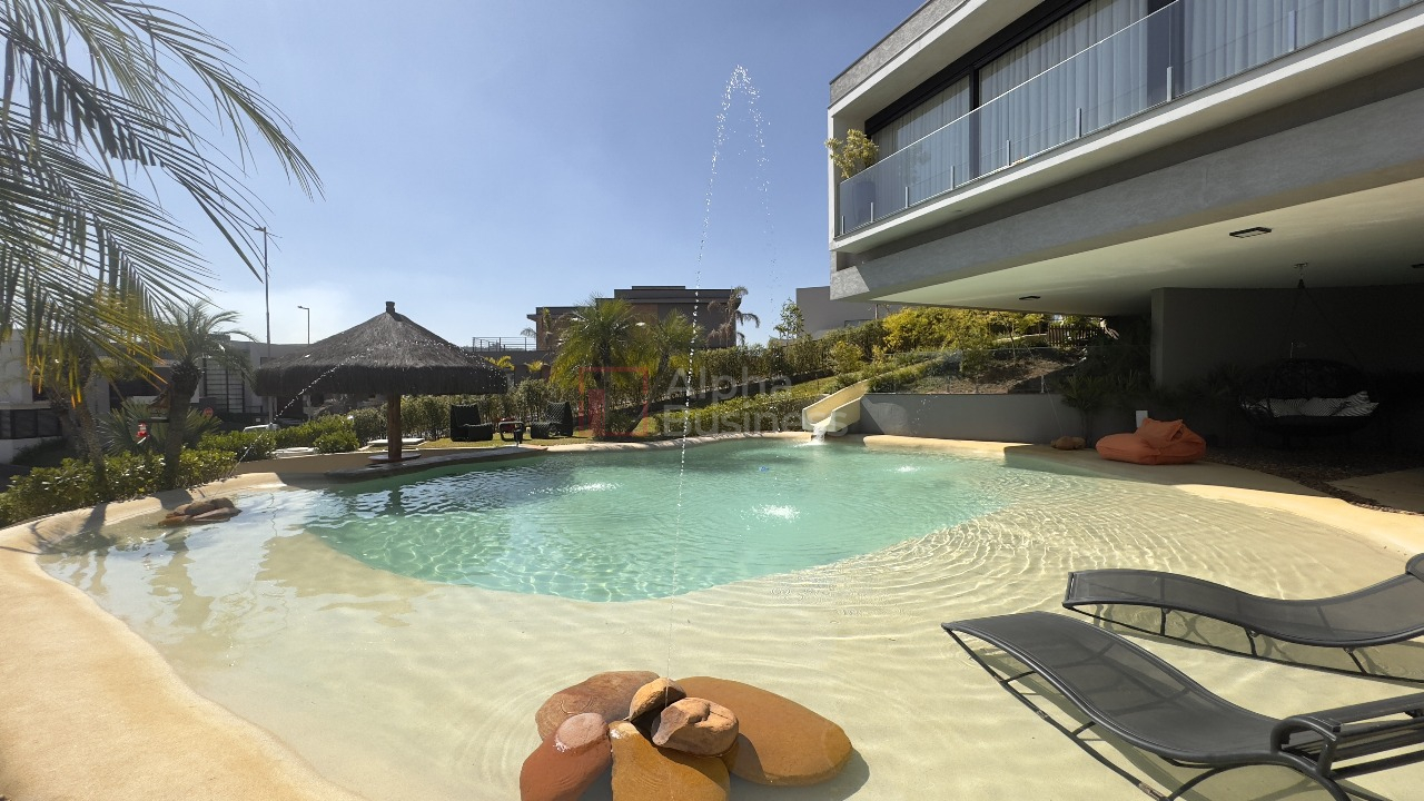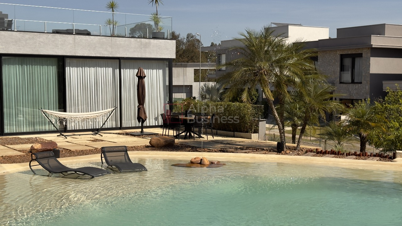 Com projeto pensado para receber com estilo e conforto, esta casa reúne o que há de melhor em tecnologia, lazer e bem-estar. O destaque absoluto é a piscina natural, com quase 100m², tratada com ozônio, aquecida, com bar molhado, chafarizes e até um toboágua que garante diversão para todas as idades.