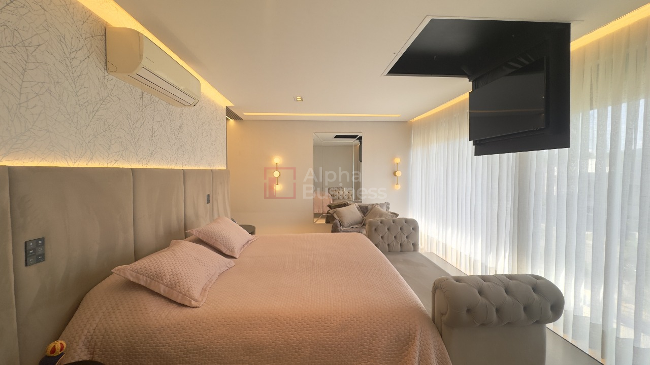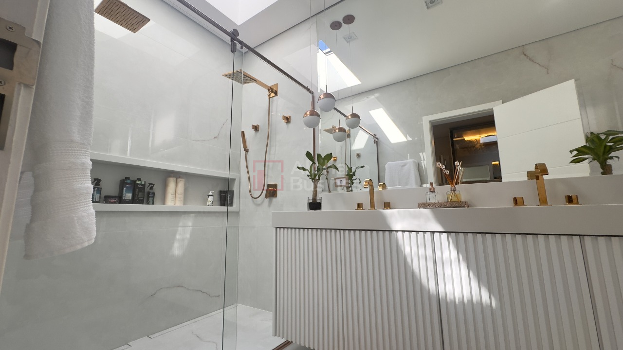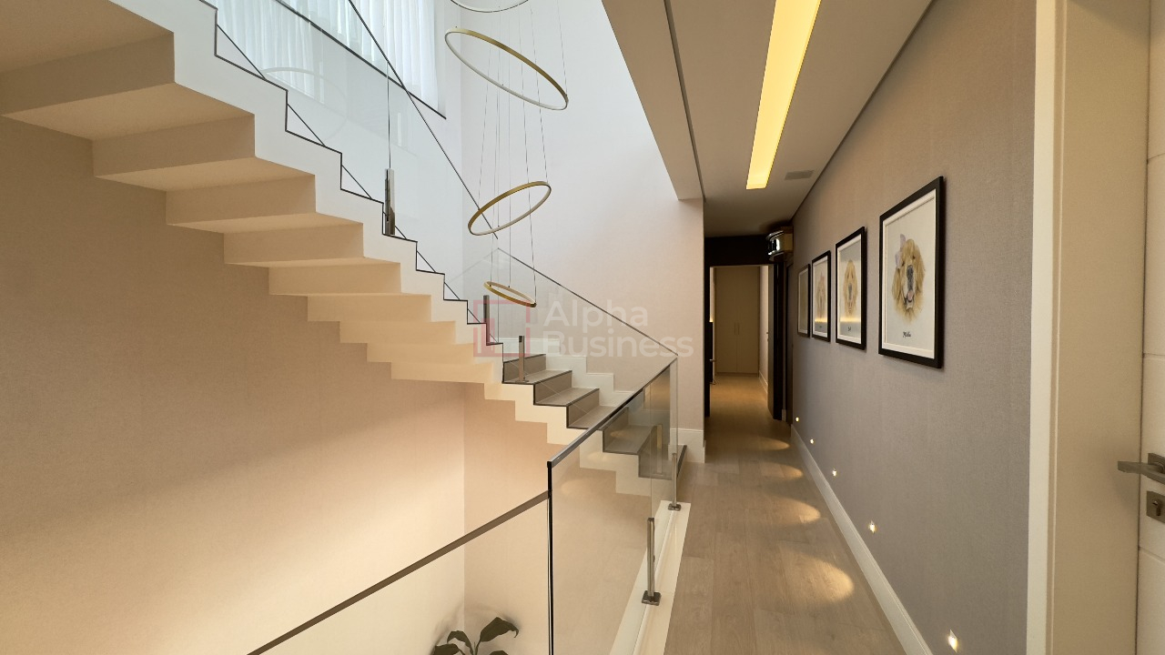 Todos os espaços contam com ar-condicionado, sistema de aspiração central, som ambiente interno e externo e um moderno sistema de automação completa, que integra iluminação, climatização e áudio com facilidade. A casa ainda dispõe de sistema fotovoltaico para geração de energia limpa e sustentável, reforçando sua modernidade e eficiência.