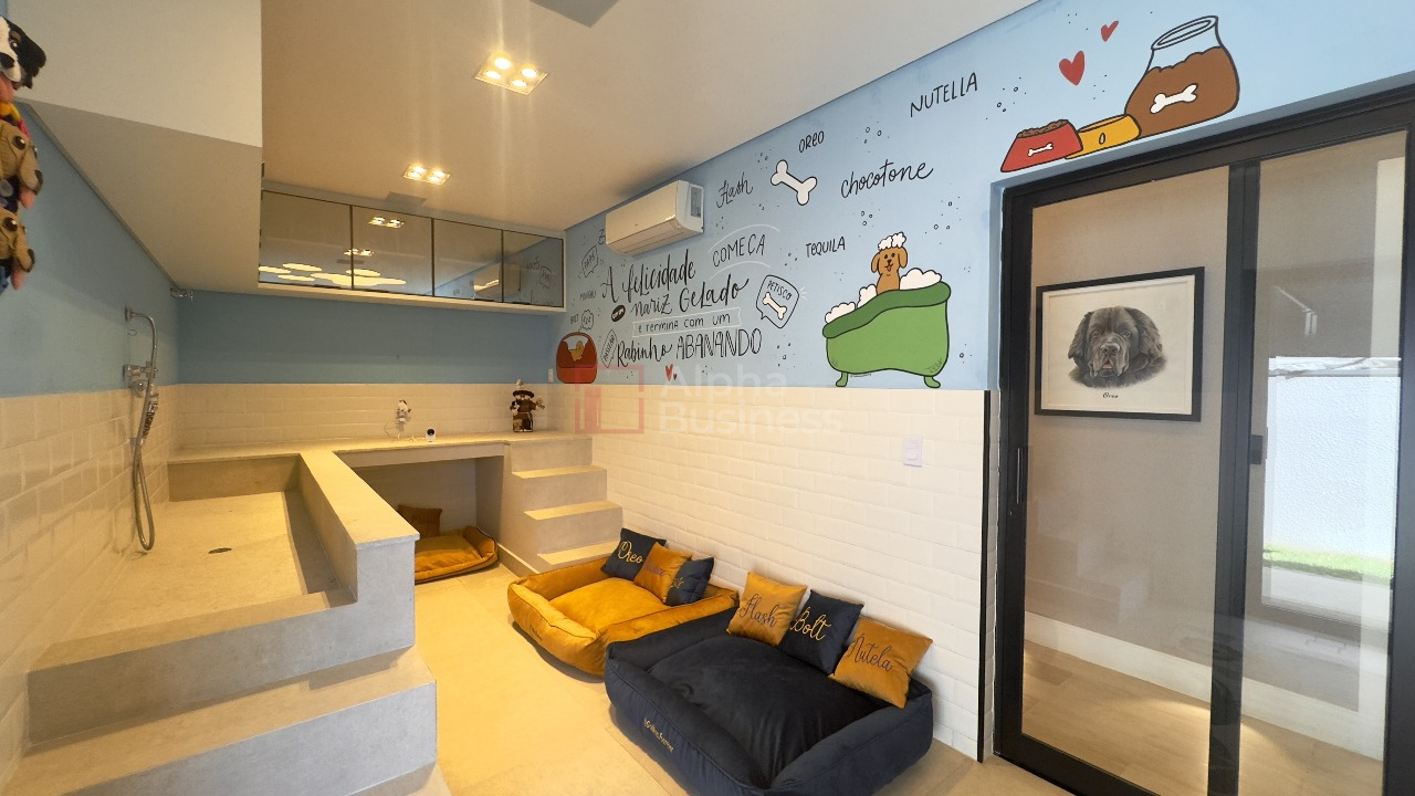 Os ambientes da casa se destacam pelo cuidado em cada detalhe. As 4 suítes são amplas e confortáveis, a sala é bem acabada e acolhedora, e até os pets têm um espaço exclusivo, com um cômodo dedicado para banho e cuidados. Do lado de fora, a casa oferece uma área gramada extensa, que convida ao convívio, além de um gazebo charmoso, perfeito para relaxar e aproveitar bons momentos ao ar livre.