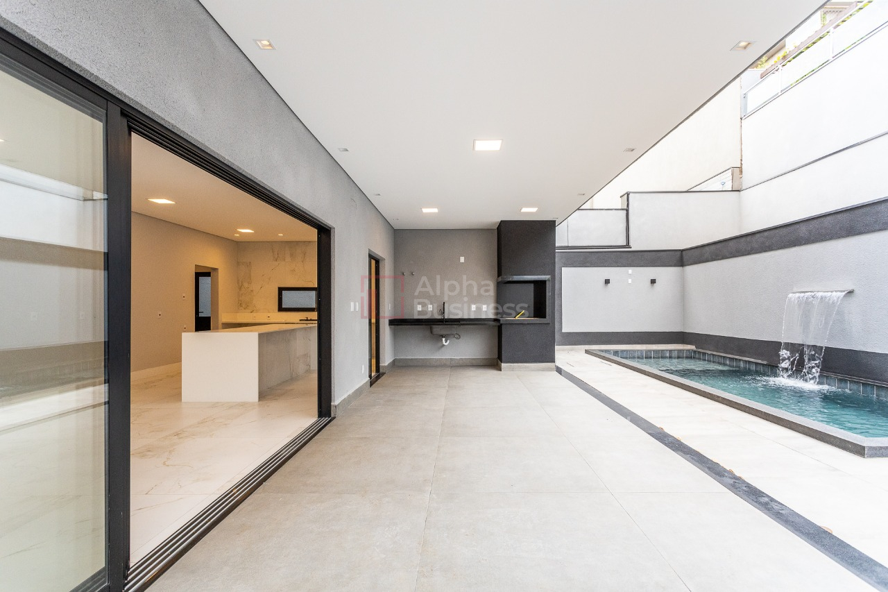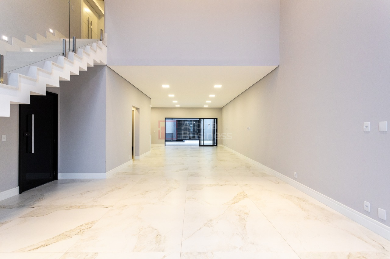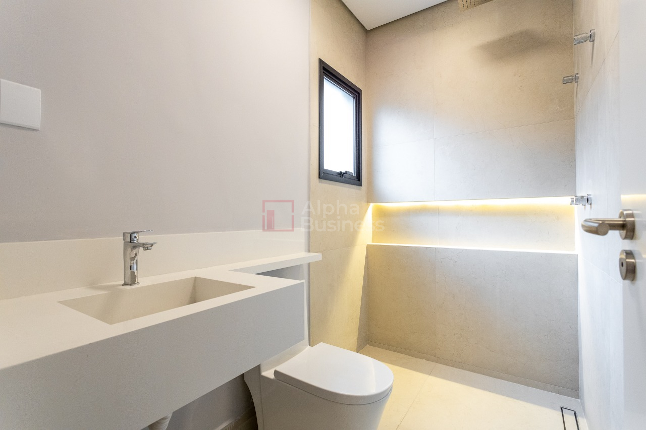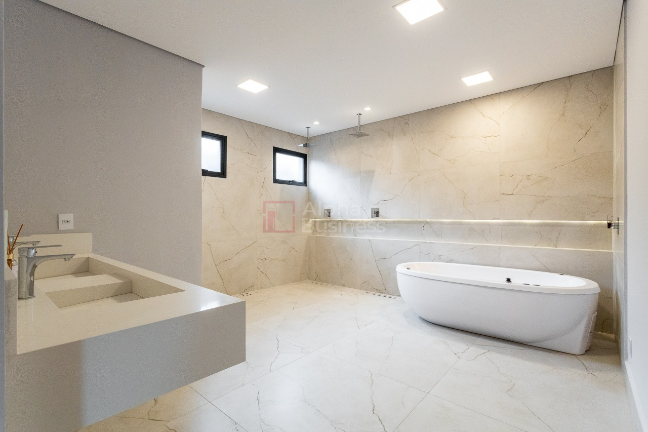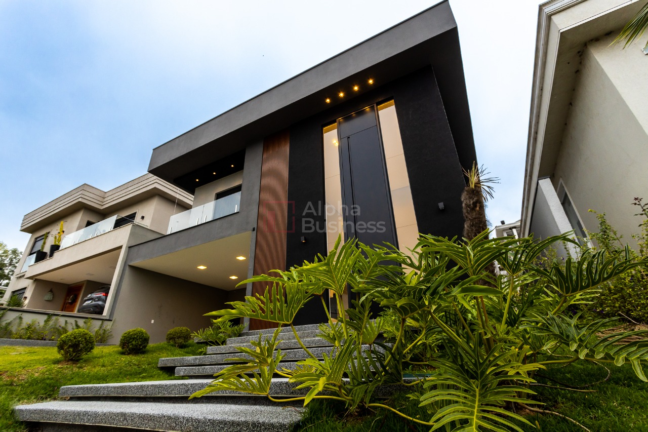 5 suítes sendo uma master com closet e sala de banho com hidro. No pavimento térreo as salas de estar e jantar são integradas com cozinha estilo Americana com ilha quente e espaço gourmet. Um lavabo e um banheiro completo para atender o espaço de lazer externo.
