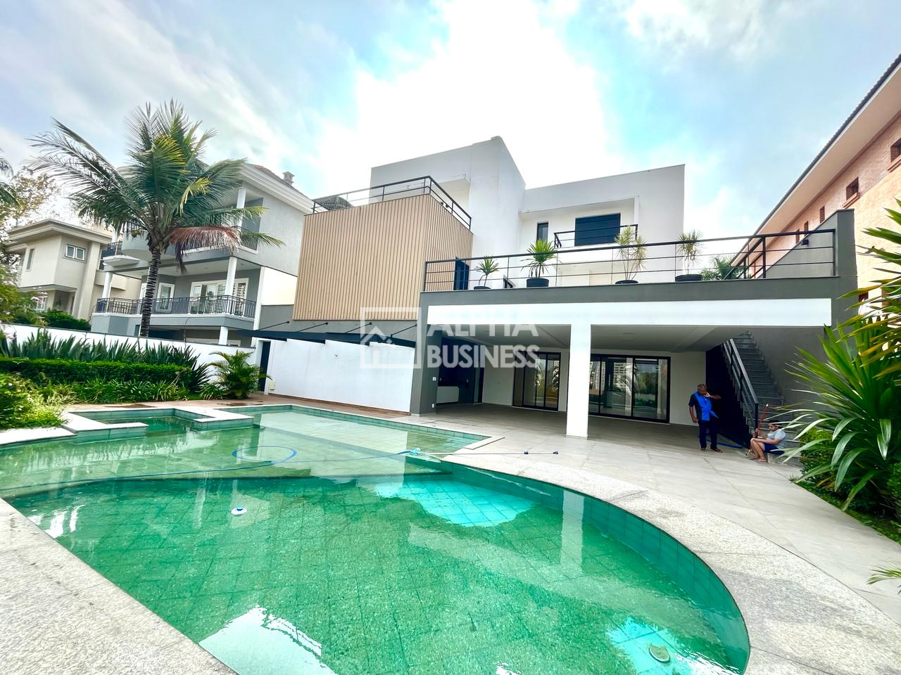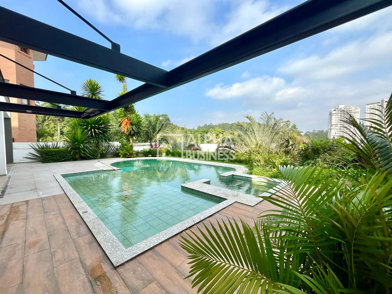 O destaque desta propriedade é, sem dúvida, a área externa deslumbrante, que apresenta uma piscina convidativa, perfeita para relaxar nos dias ensolarados, além de 6 vagas de garagem para acomodar com conforto os veículos da família e convidados.
