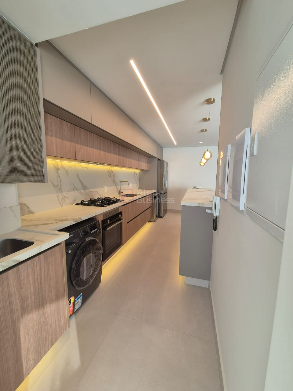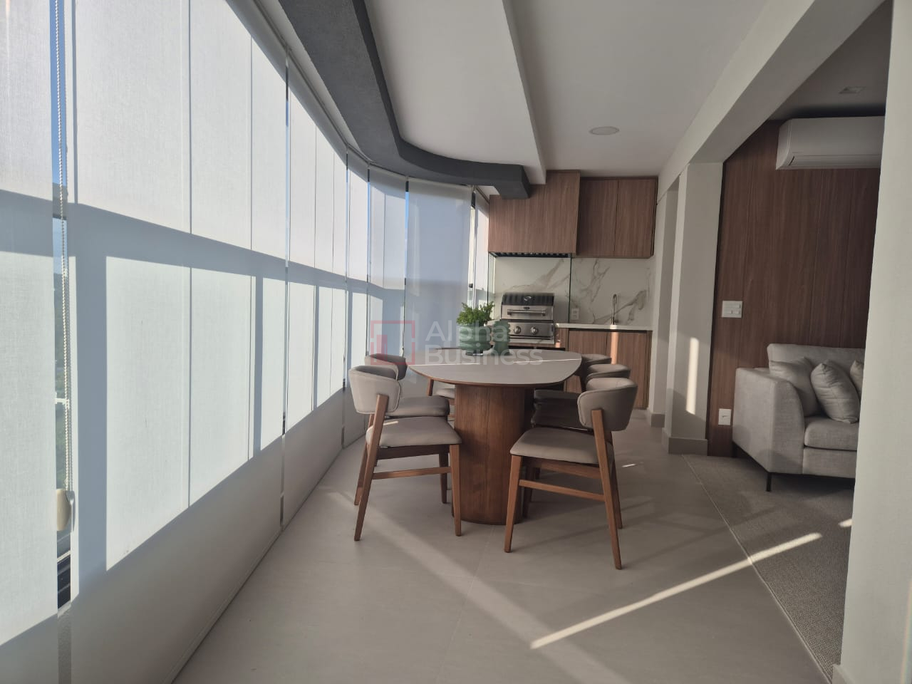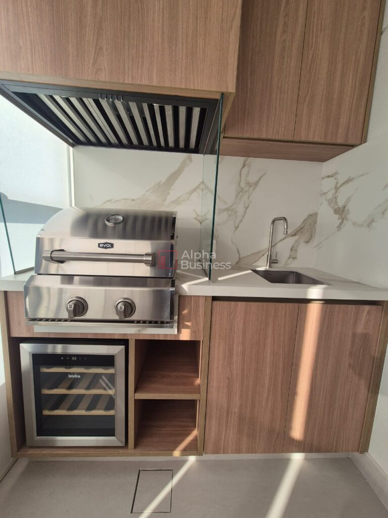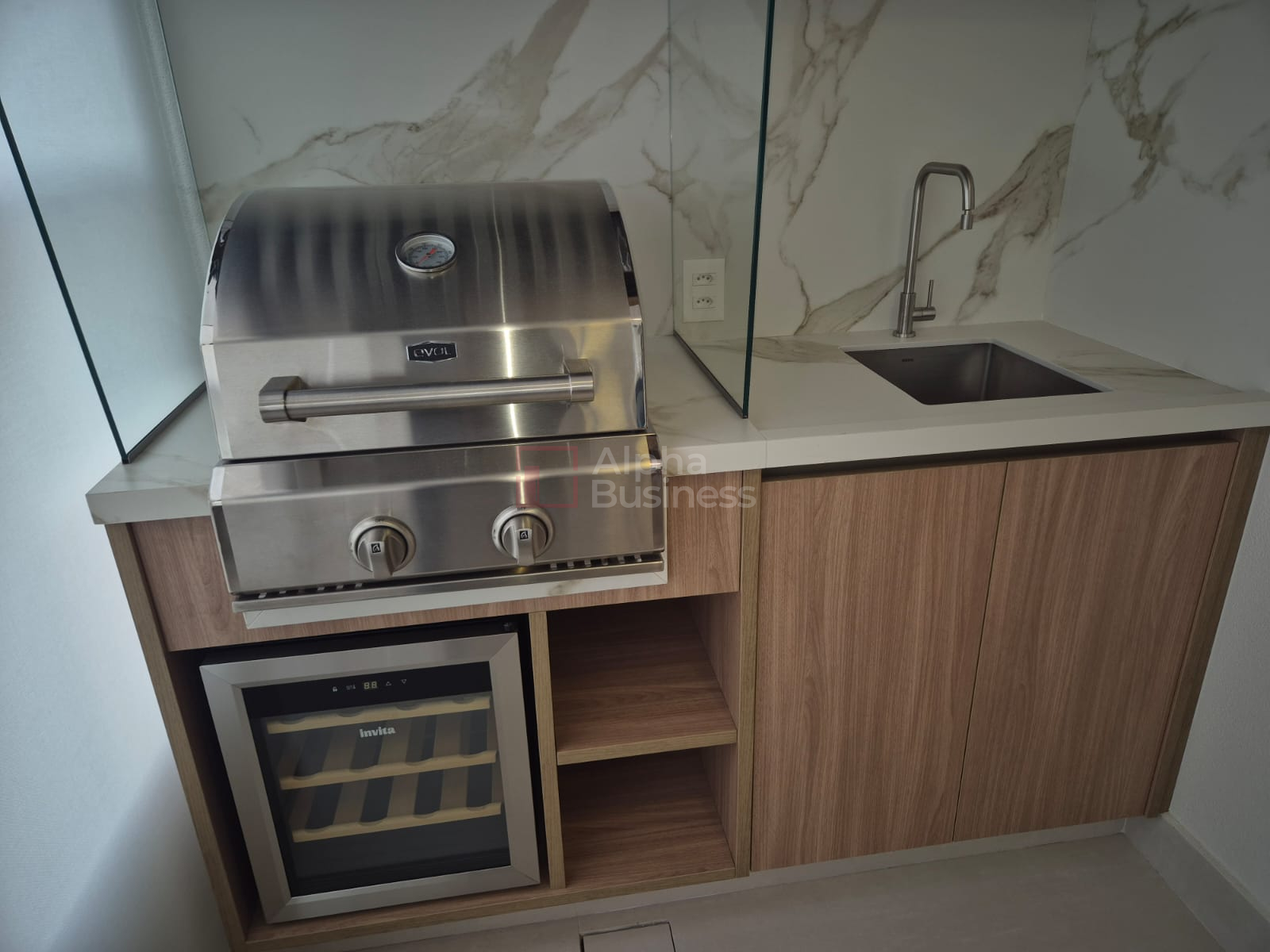 Gourmet com vidros da Vidrologia e persianas solares, churrasqueira a gás Italiana Evol mais Adega, Cooktop Eletromec, TV 80 polegadas Q.Led e todos os demais eletrodomésticos da marca Samsung