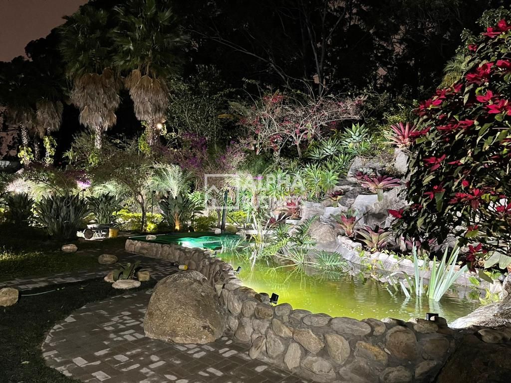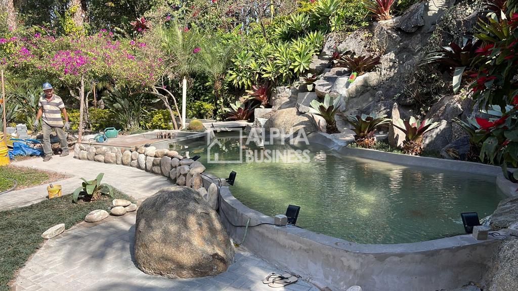 O paisagismo exuberante que envolve toda a propriedade adiciona um toque de serenidade e beleza natural, criando um ambiente verdadeiramente paradisíaco.