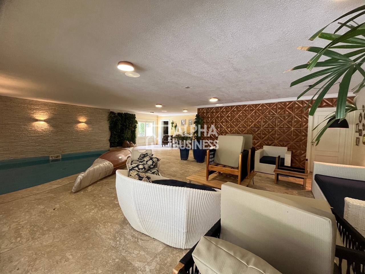 A área de lazer desta magnífica residência é um verdadeiro oásis de relaxamento e bem-estar. Uma piscina convida ao mergulho refrescante, enquanto a sauna e o spa oferecem momentos revigorantes de puro deleite. Para atender às necessidades do dia a dia, a dependência para funcionários está estrategicamente posicionada, garantindo praticidade e conforto para toda a família.