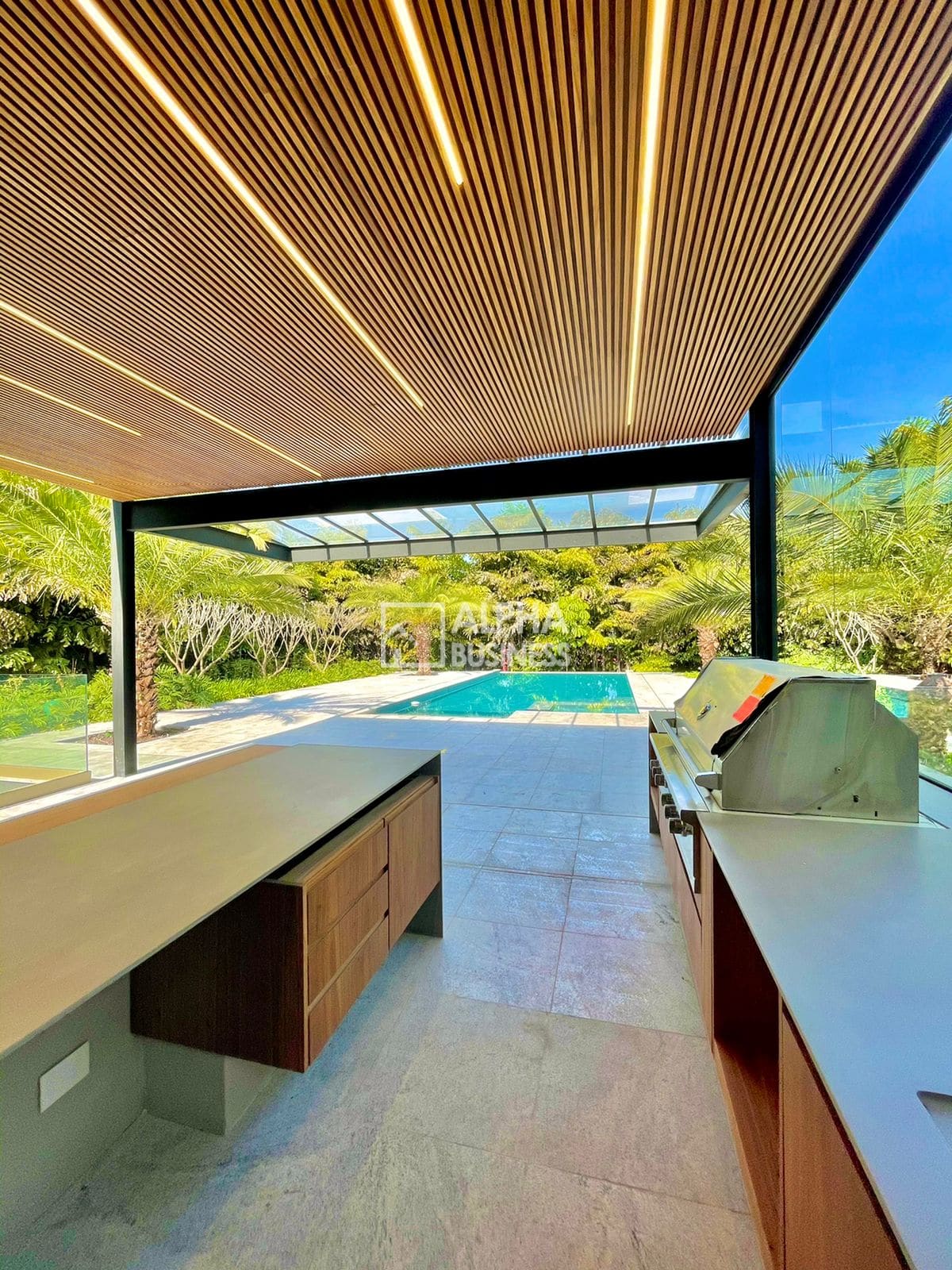 ????♂️ Piscina ampla com spa, aquecimento solar e borda infinita