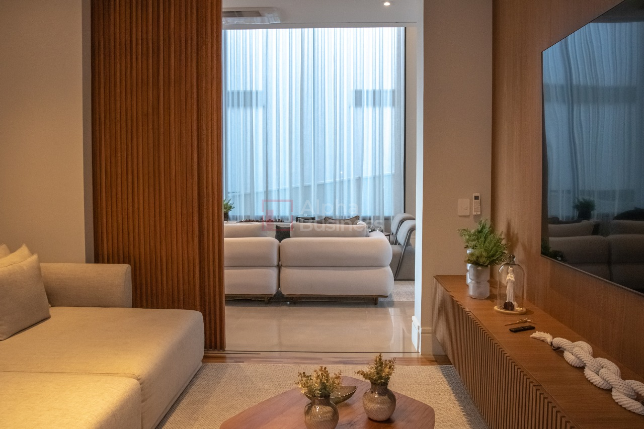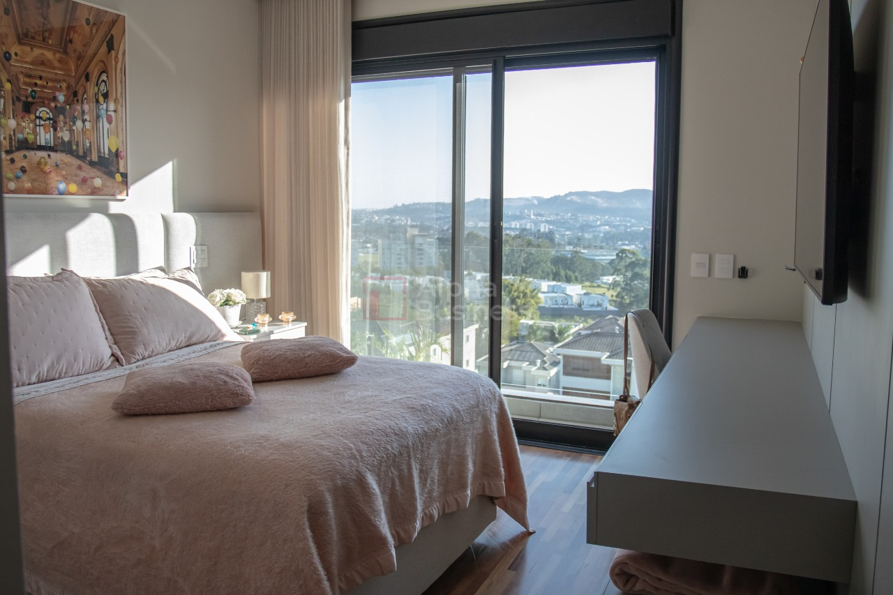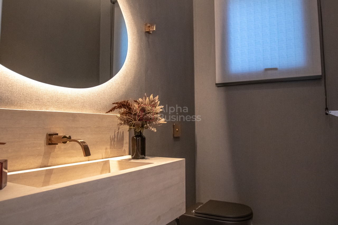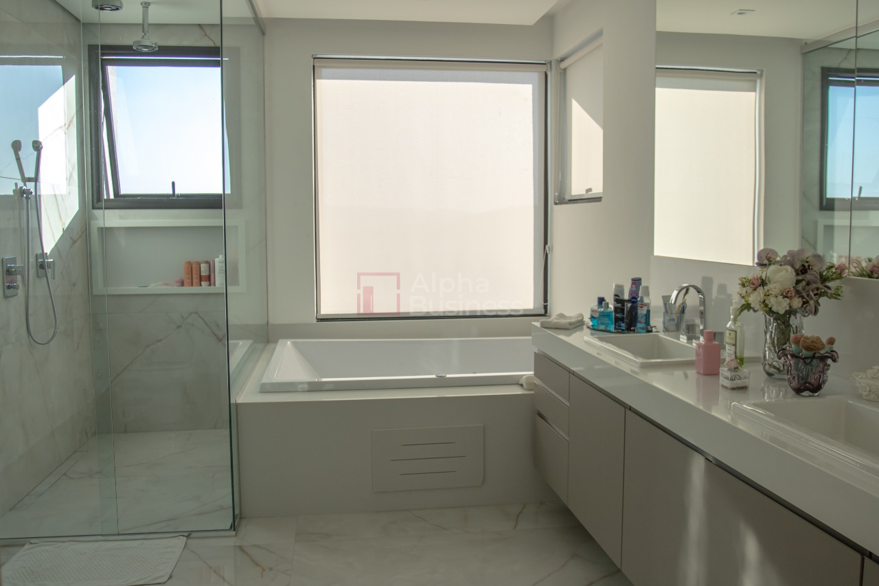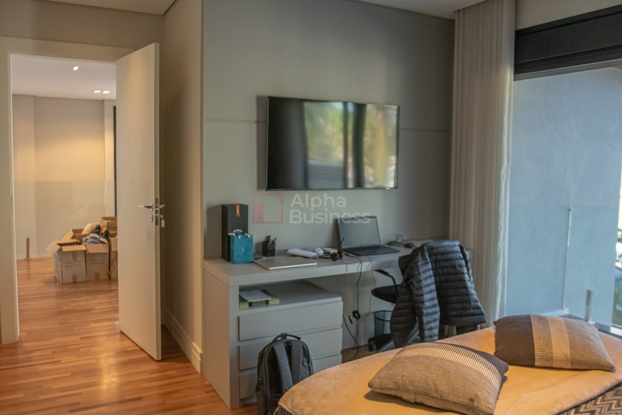 Com planta integrada, o living amplo com pé-direito duplo proporciona muita luminosidade natural e sensação de amplitude. São 4 suítes espaçosas, cozinha com ilha ideal para gourmets, sala de jantar e home theater para momentos de lazer. O imóvel ainda conta com escritório confortável e copa de apoio no piso superior.