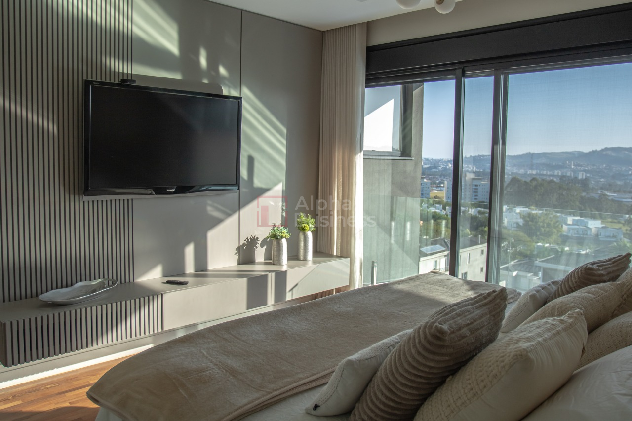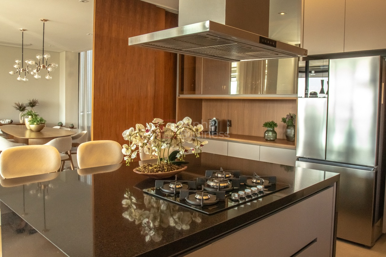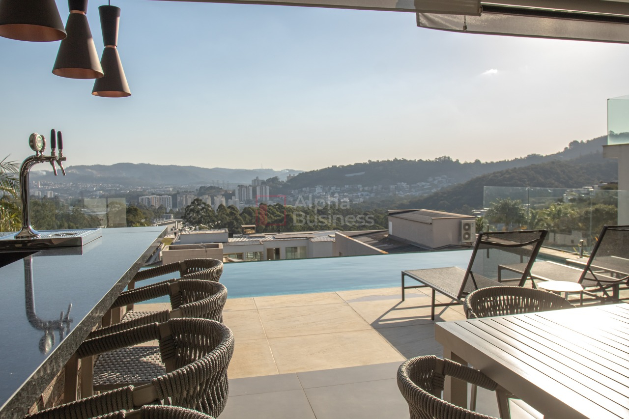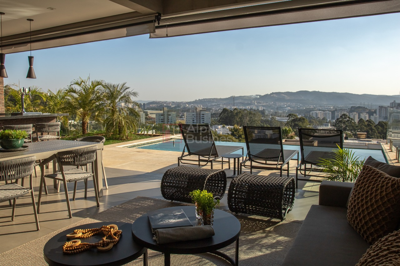 Na área externa, espaço gourmet totalmente equipado e piscina com borda infinita criam o cenário perfeito para receber convidados e aproveitar um lindo pôr do sol com vista definitiva.
