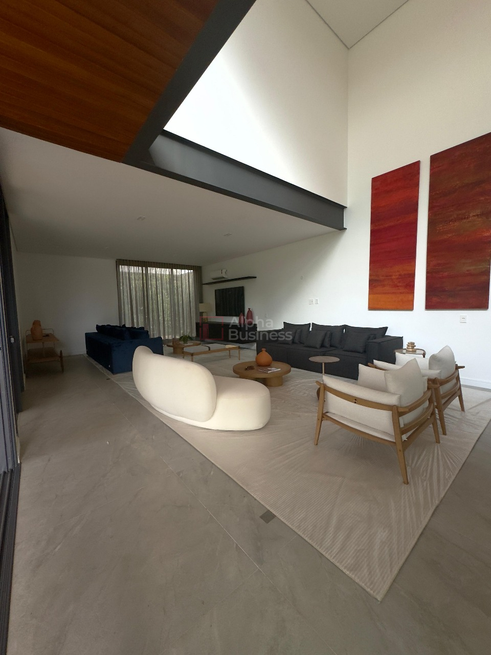 Ao entrar na casa, você será recebido por um espaçoso ambiente de estar e jantar, com um pé direito duplo que cria uma sensação de amplitude e elegância. A casa possui 4 suítes, incluindo uma suíte master com closet, oferecendo um espaço privativo para relaxamento e conforto. Além disso, há uma opção para uma quinta suíte no piso térreo, fornecendo flexibilidade e conveniência.