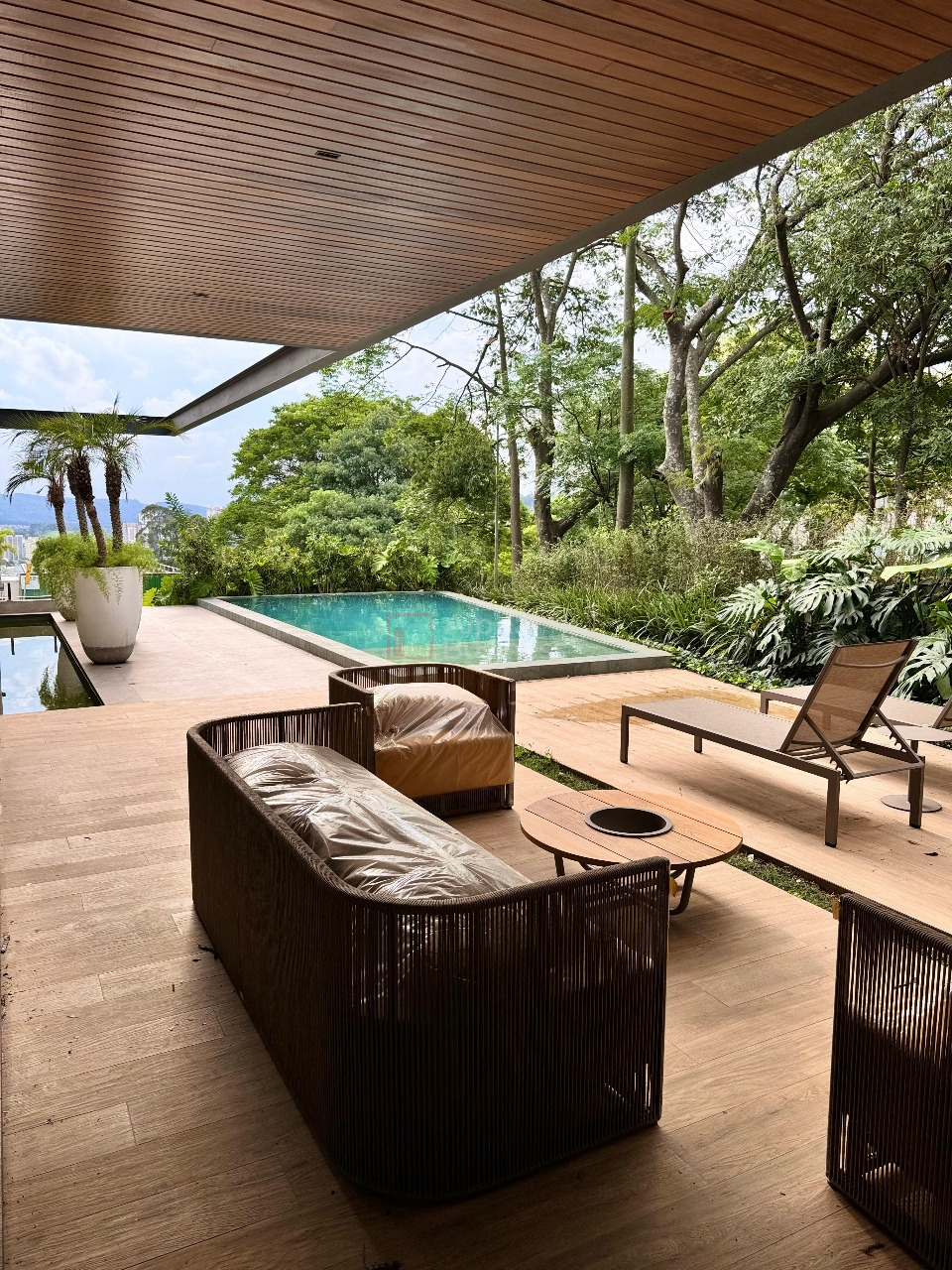 A área gourmet da residência está integrada ao espaço de lazer, com um terraço externo coberto, perfeito para receber convidados e desfrutar de momentos especiais. A propriedade também conta com uma bela piscina, completa com uma prainha e um deck, proporcionando um ambiente tranquilo para se refrescar e aproveitar os dias ensolarados.