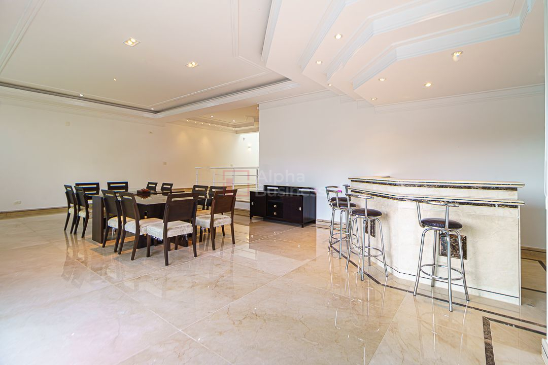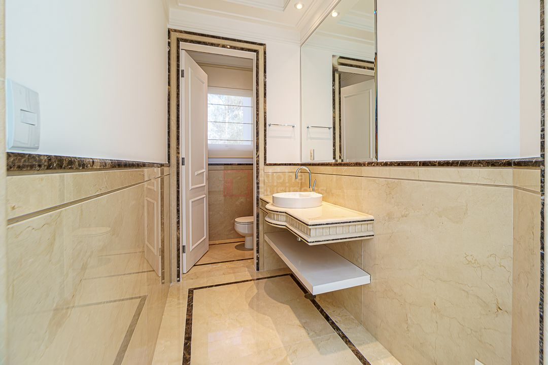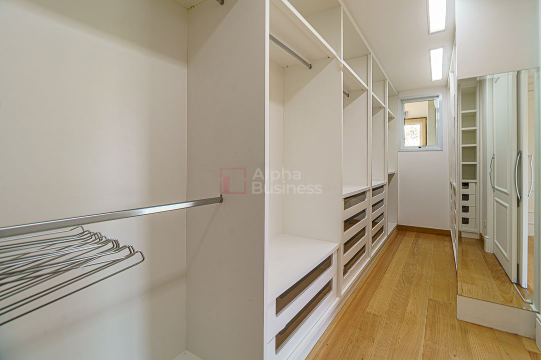Os detalhes internos refletem o zelo e a atenção aos acabamentos de alta qualidade. Cada uma das 7 suítes é um santuário de conforto, garantindo privacidade e espaço pessoal para todos os membros da família e convidados. Armários cuidadosamente projetados oferecem soluções de armazenamento elegantes, enquanto o sistema de ar condicionado mantém a temperatura ideal em todos os cantos da residência.