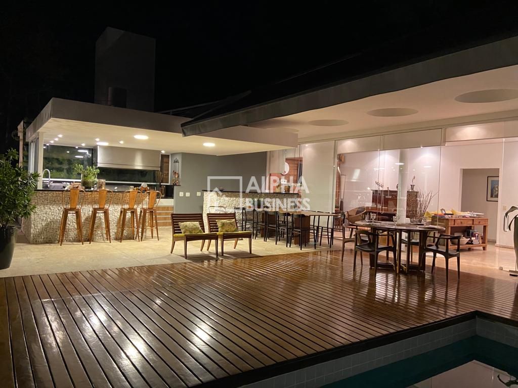 Ao adentrar a residência, é impossível não se impressionar com o pé direito duplo, que confere uma sensação de amplitude e sofisticação aos ambientes. A casa dispõe de 5 suítes, todas completas com elegantes armários planejados, proporcionando praticidade e organização aos moradores.