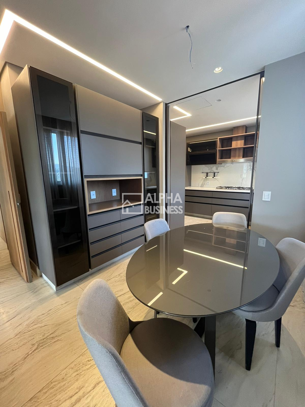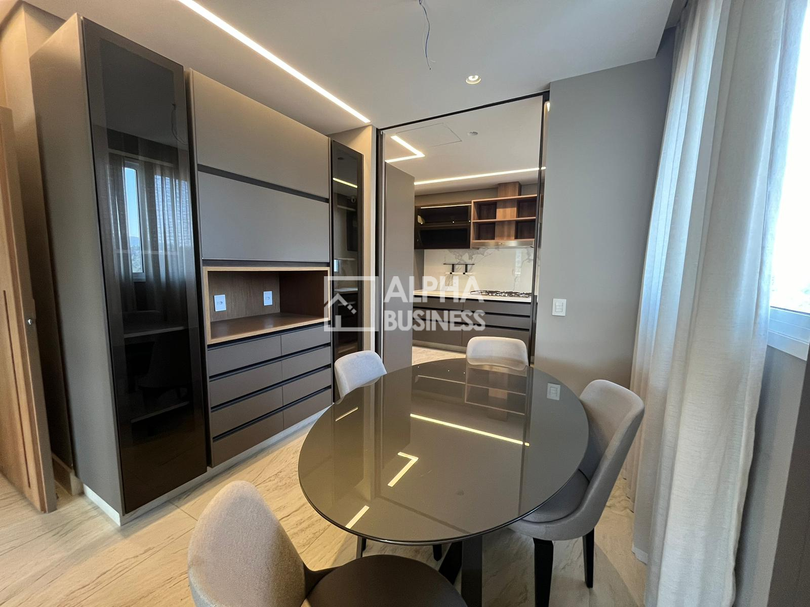 Ar-condicionado Daikin em todo apartamento, com difusor linear na área social