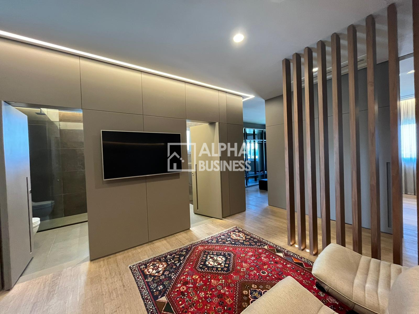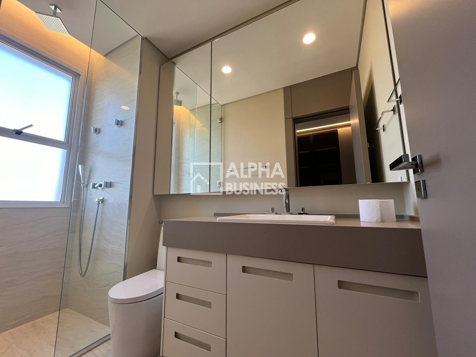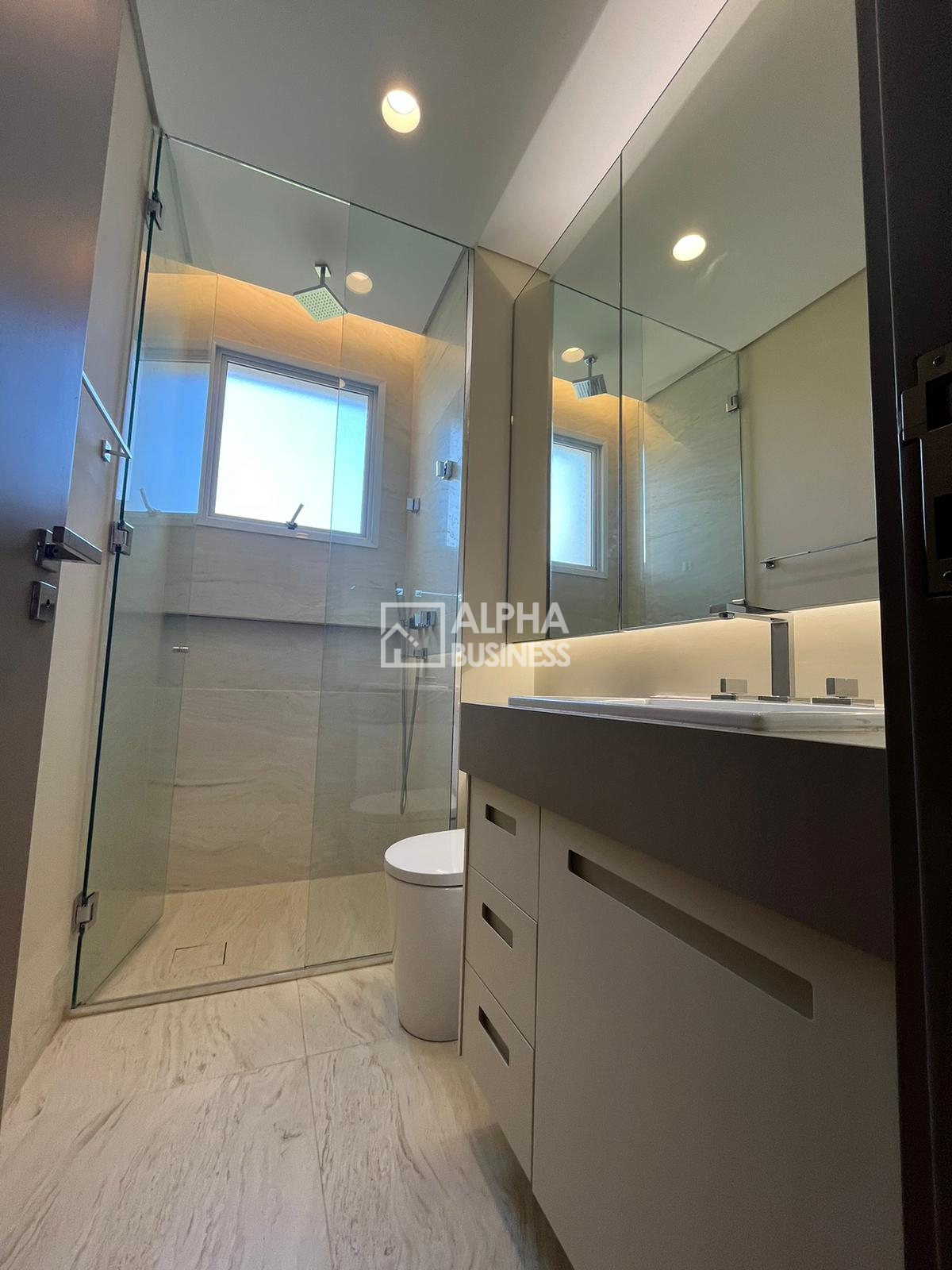 3 suítes, sendo uma master com banheiros Sr. e Sra., com sanitários DURAVIT e amplo closet