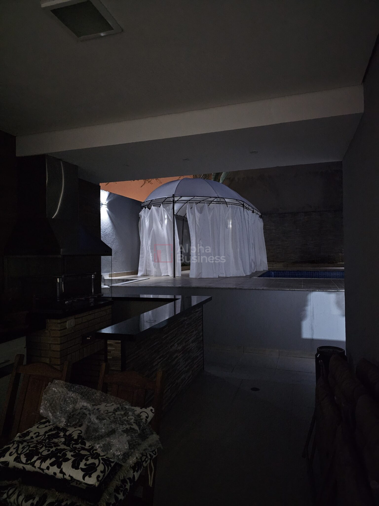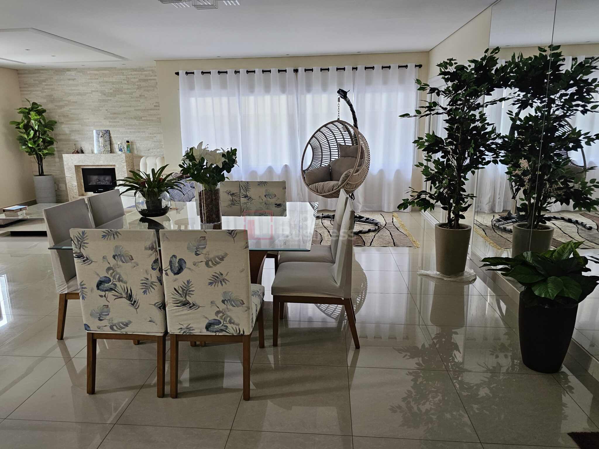 Os ambientes sociais são generosos e bem distribuídos: uma sala de estar acolhedora, ideal para momentos de relaxamento, e uma elegante sala de jantar, perfeita para receber convidados com estilo. O destaque fica por conta da área gourmet com churrasqueira, totalmente integrada à piscina, formando um espaço completo para lazer e confraternizações.