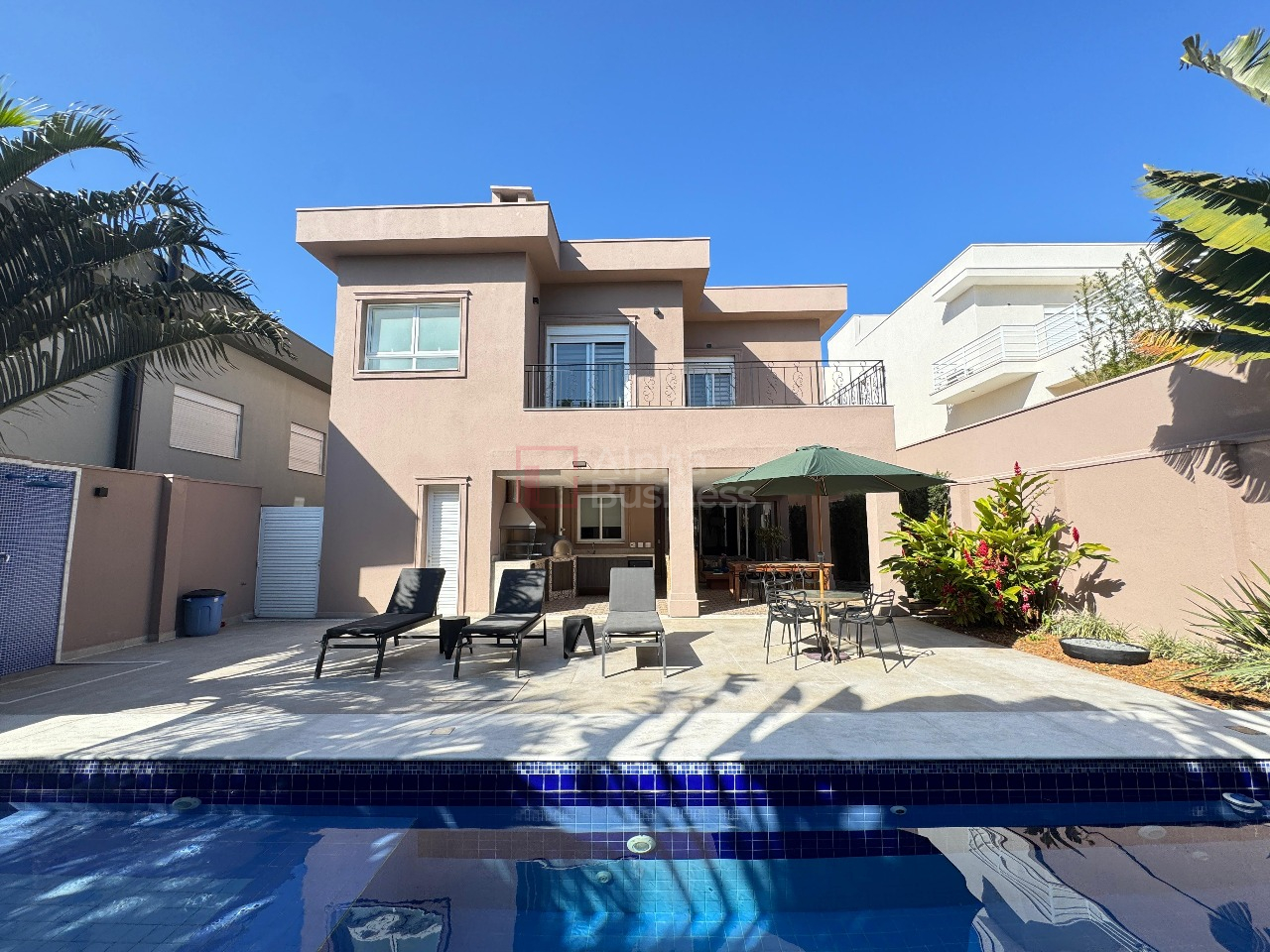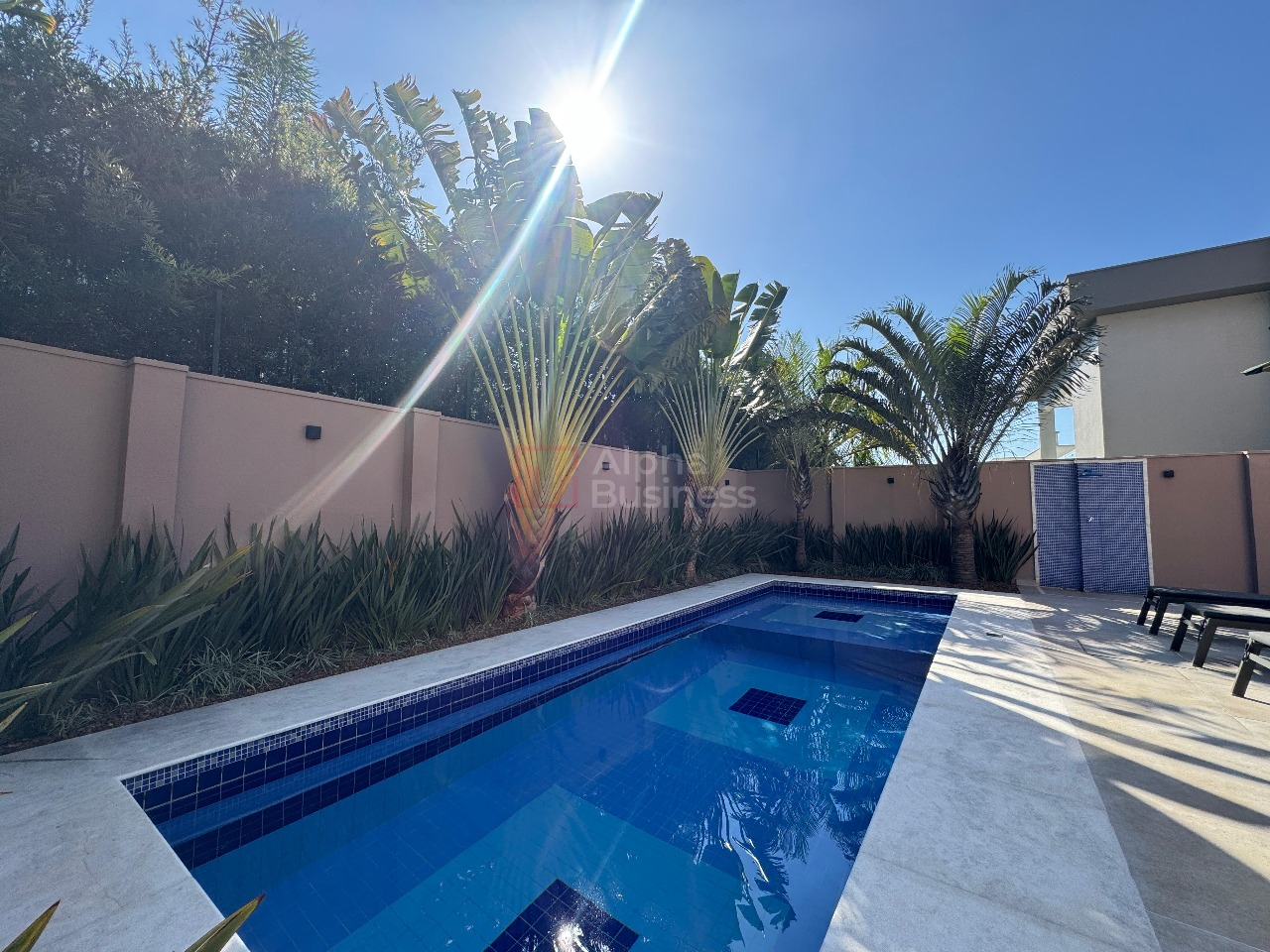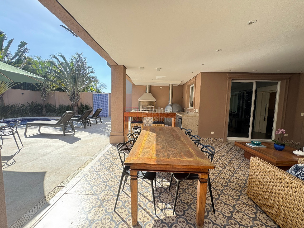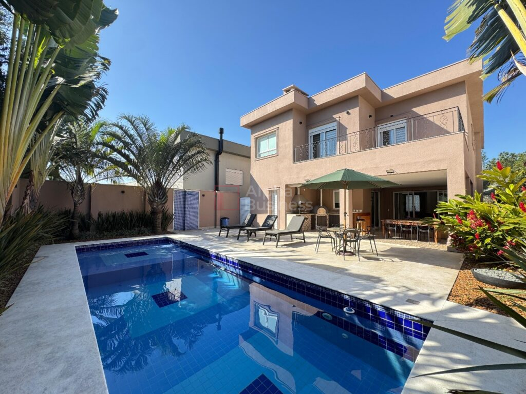 A cozinha ampla e funcional se conecta à lavanderia, à suíte de funcionários e também à área gourmet, em perfeita harmonia. O espaço de lazer oferece forno de pizza, churrasqueira e uma piscina ensolarada, pensada para receber com charme e conforto.