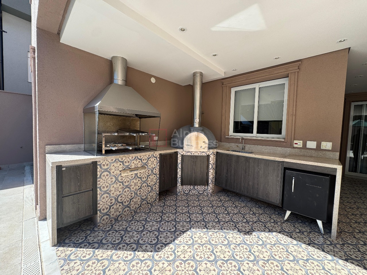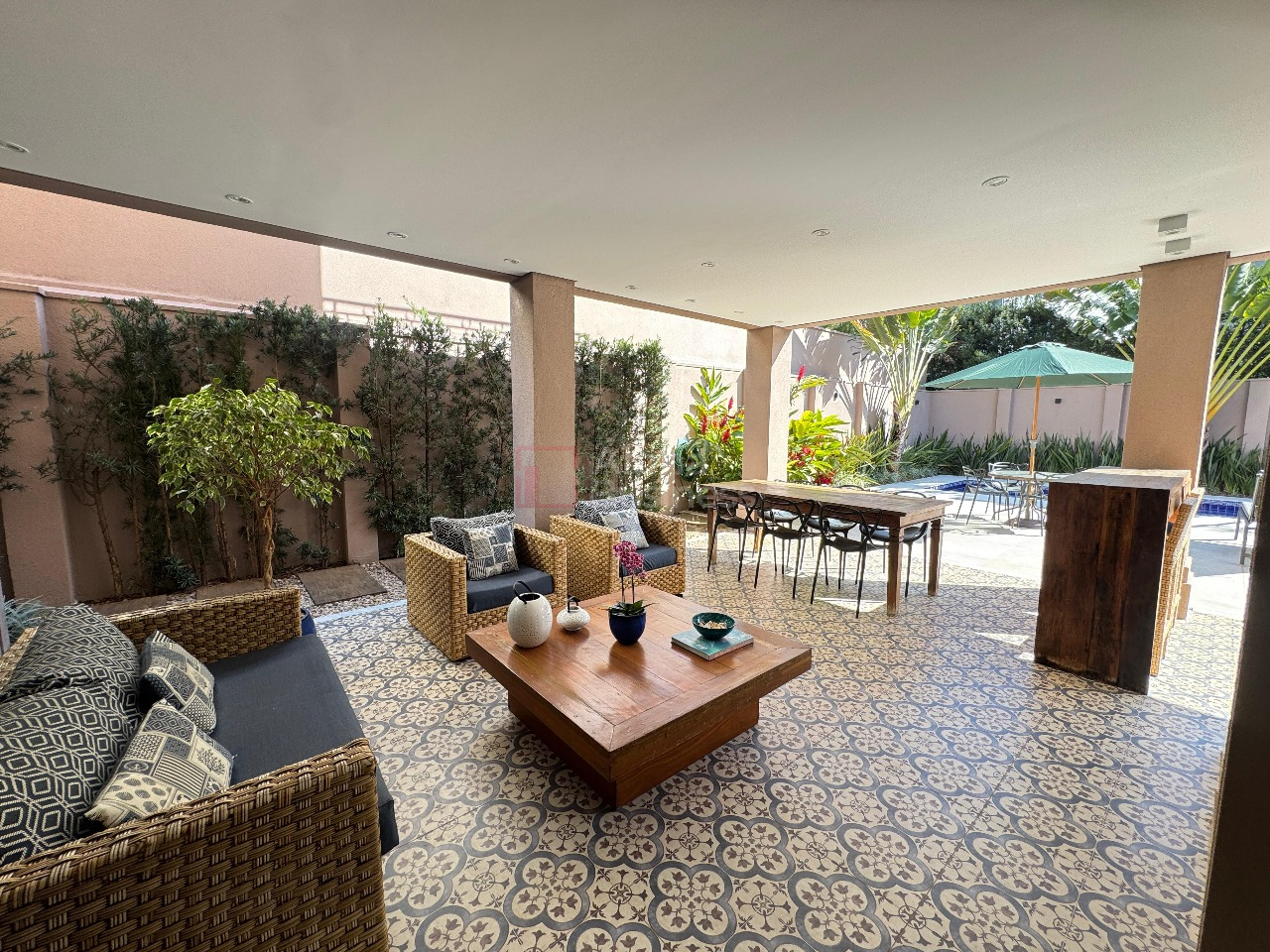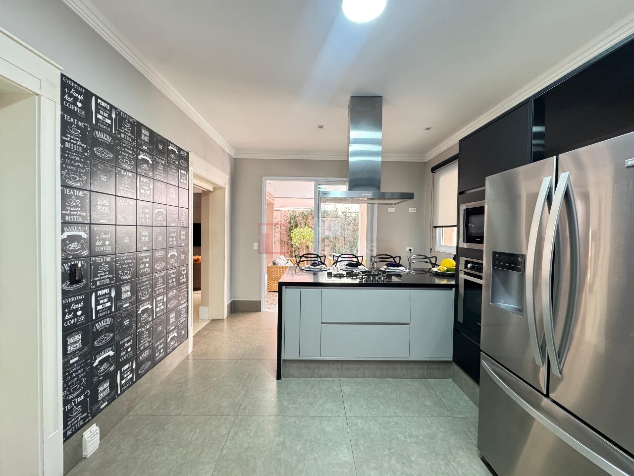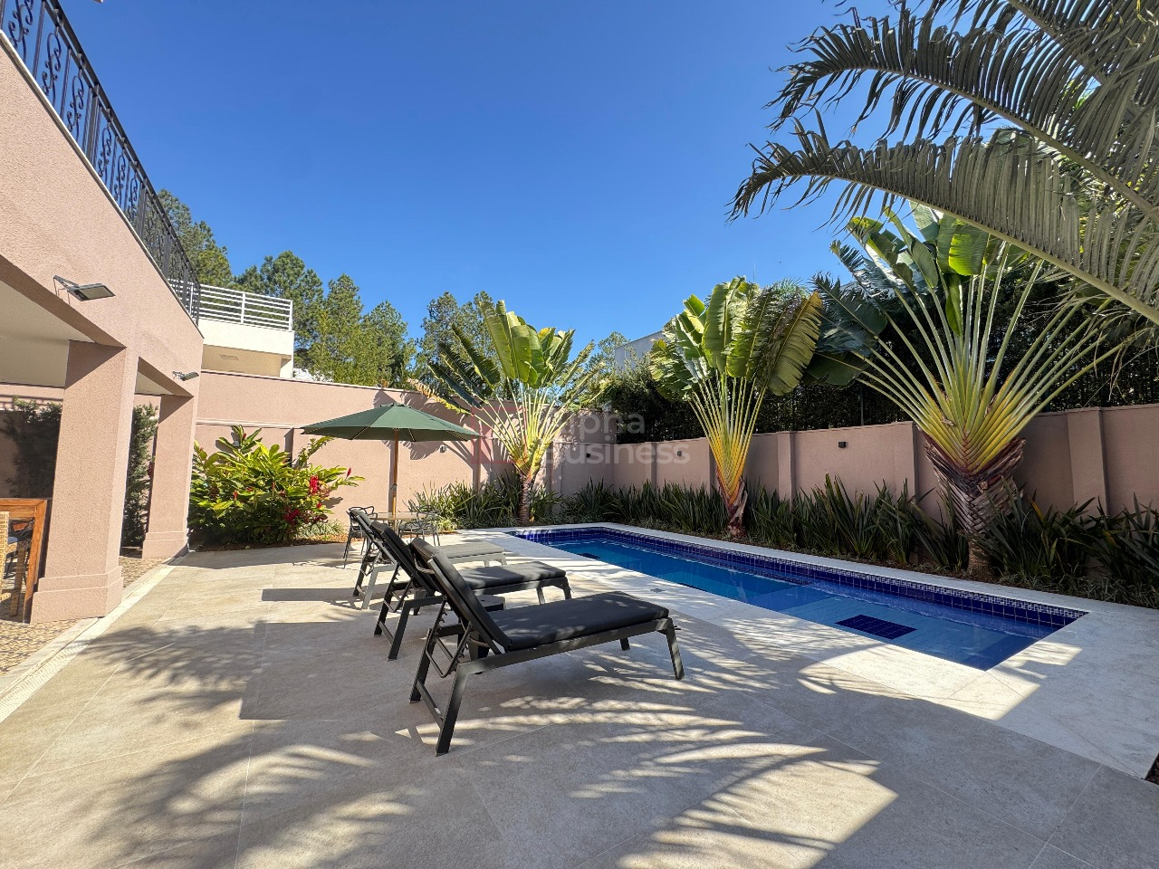 A cozinha ampla e funcional se conecta à lavanderia, à suíte de funcionários e também à área gourmet, em perfeita harmonia. O espaço de lazer oferece forno de pizza, churrasqueira e uma piscina ensolarada, pensada para receber com charme e conforto.