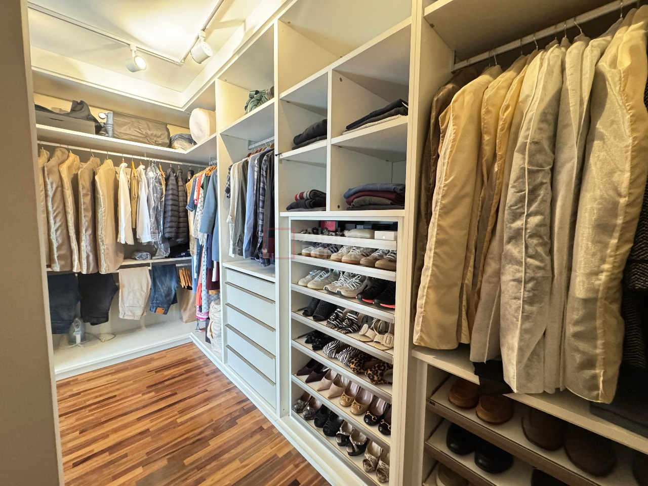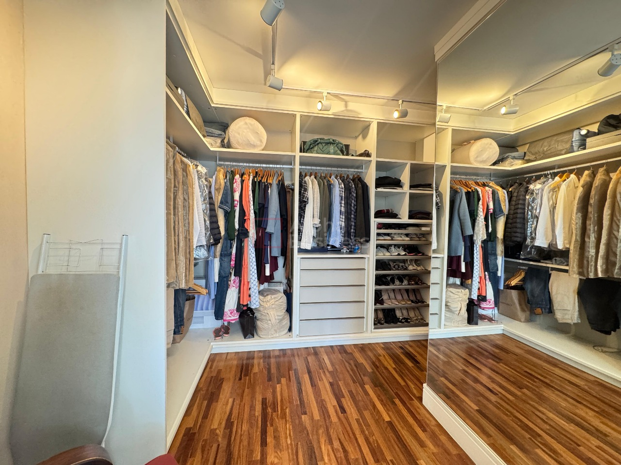 No pavimento superior, o destaque vai para a suíte master, que oferece um closet generoso e inteligentemente planejado, além de outras duas suítes e um home office reservado, ideal para o dia a dia moderno.