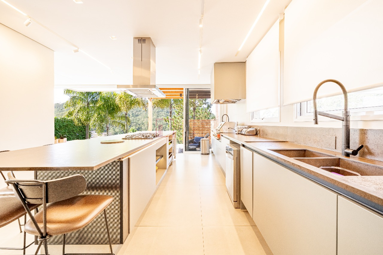 Cozinha em ilha integrada com gourmet